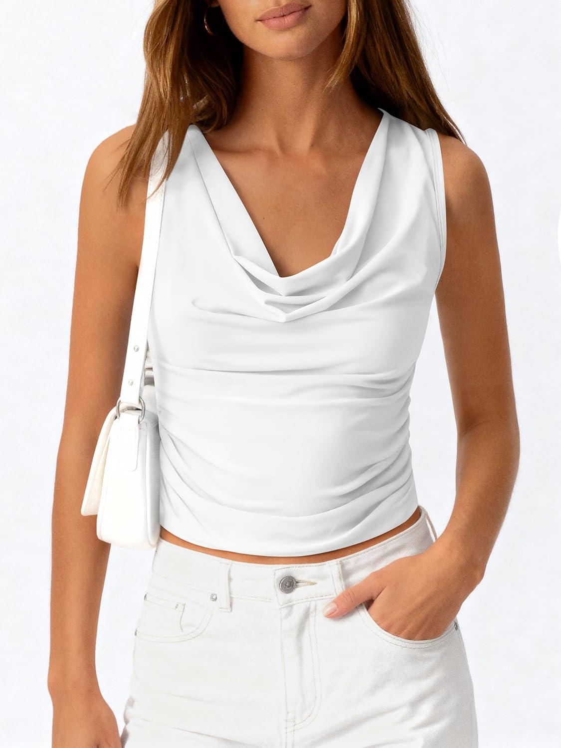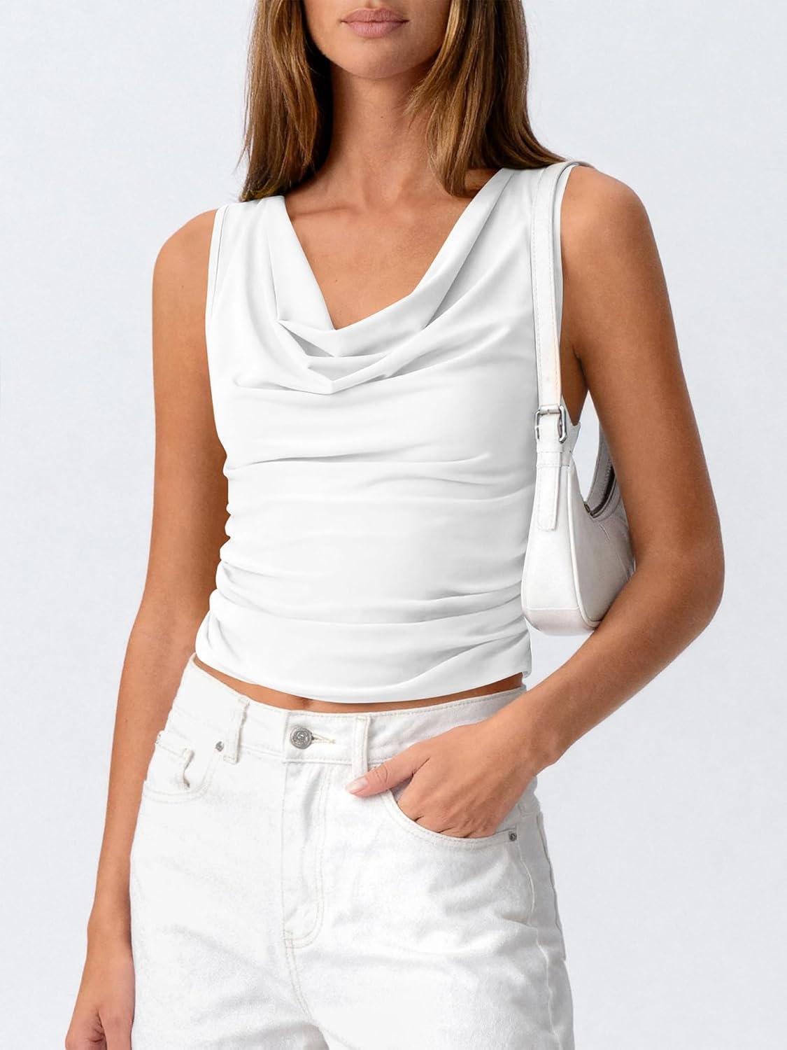 BTFBM Cowl Neck Tank Tops for Women 2026 Spring Summer Sleeveless Dressy Blouses Business Casual Outfits Going Out Top(White)