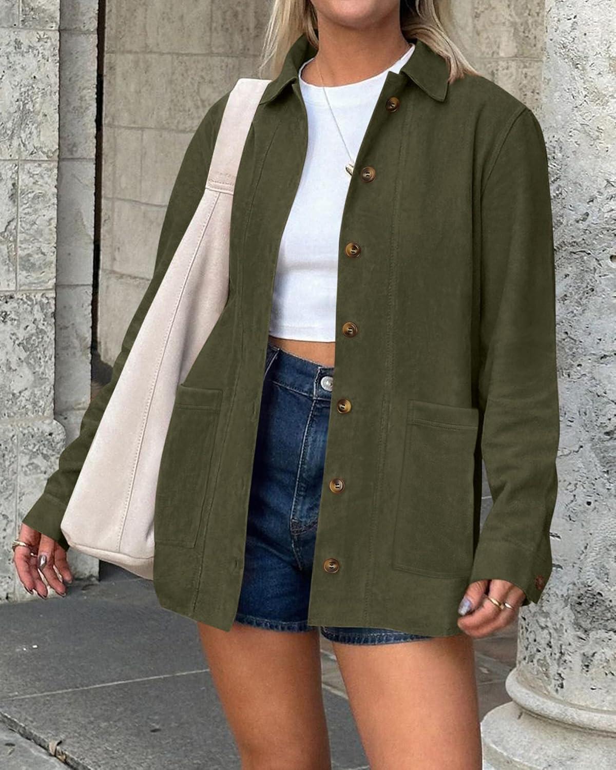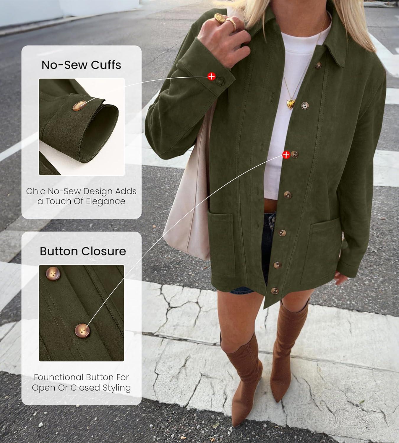 BTFBM Faux Suede Jacket Women Fall Fashion 2026 Leather Jackets Long Sleeve Button Down Winter Coats Shackets Outerwear(Army Green)