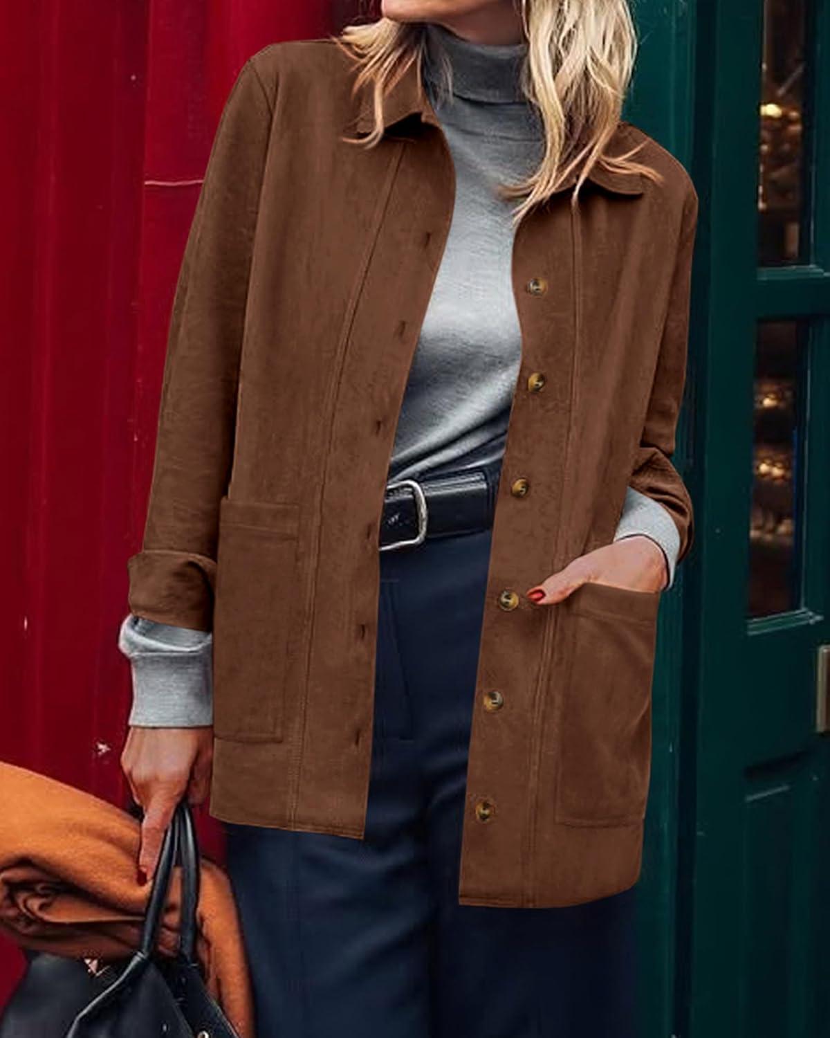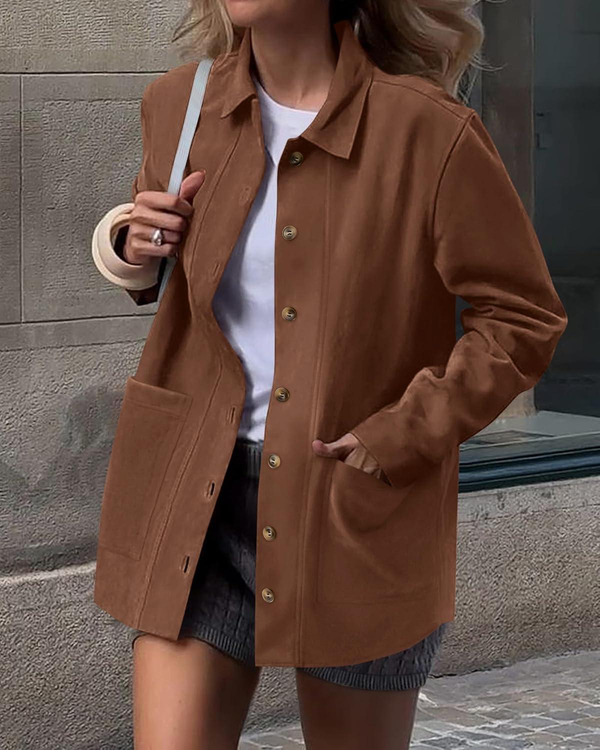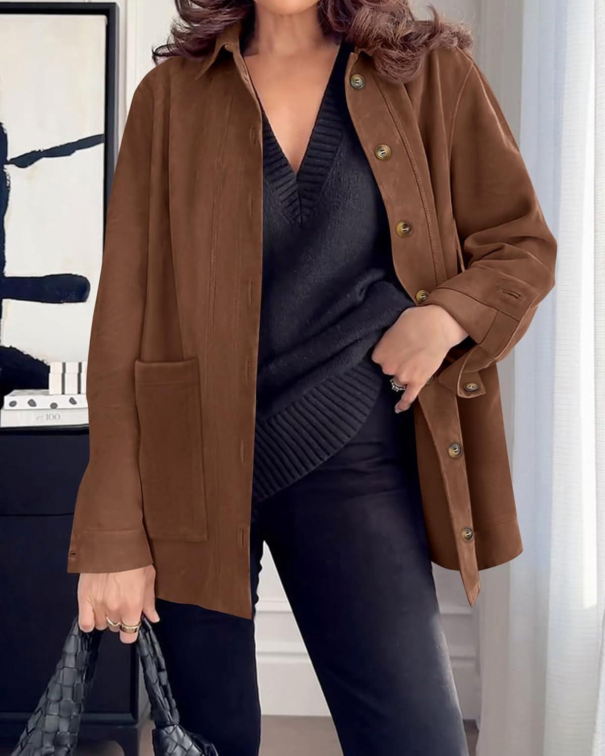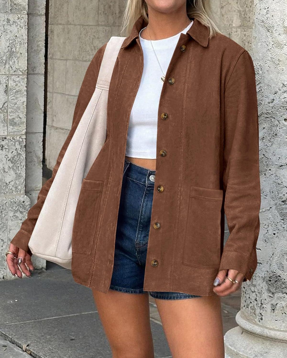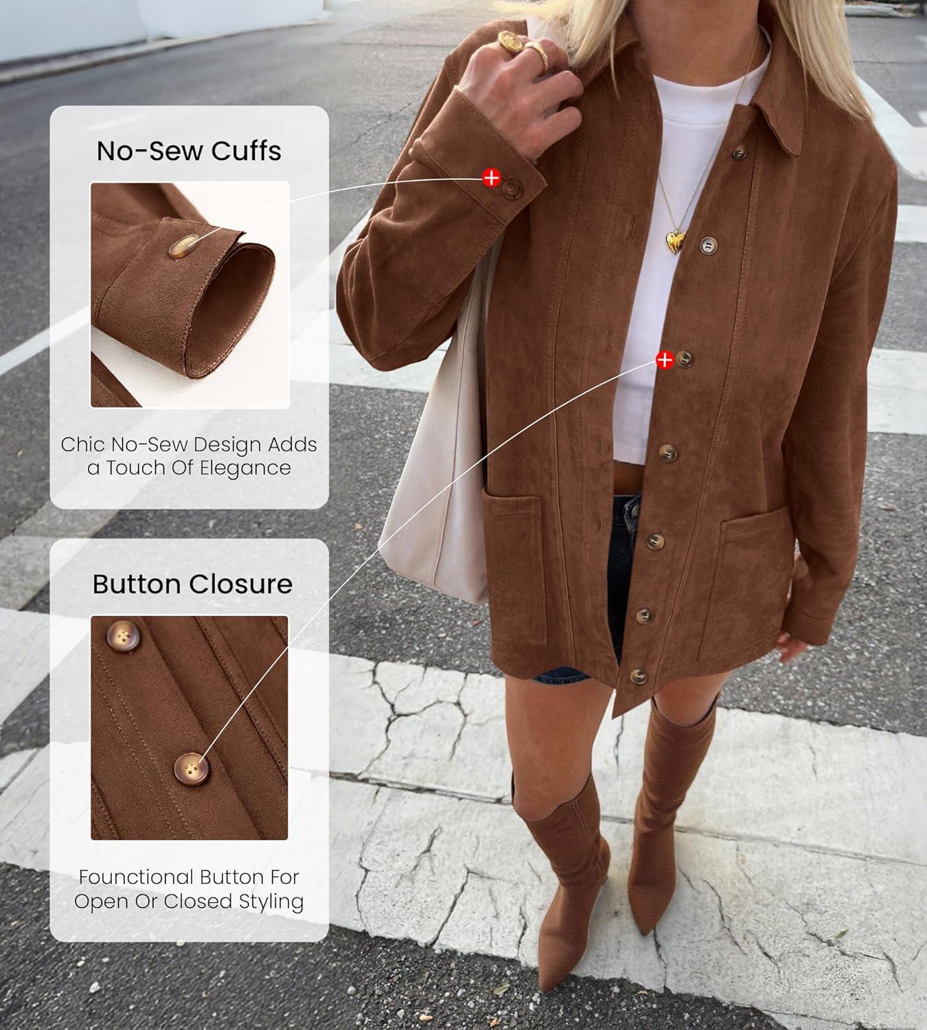 BTFBM Faux Suede Jacket Women Fall Fashion 2026 Leather Jackets Long Sleeve Button Down Winter Coats Shackets Outerwear(Brown)