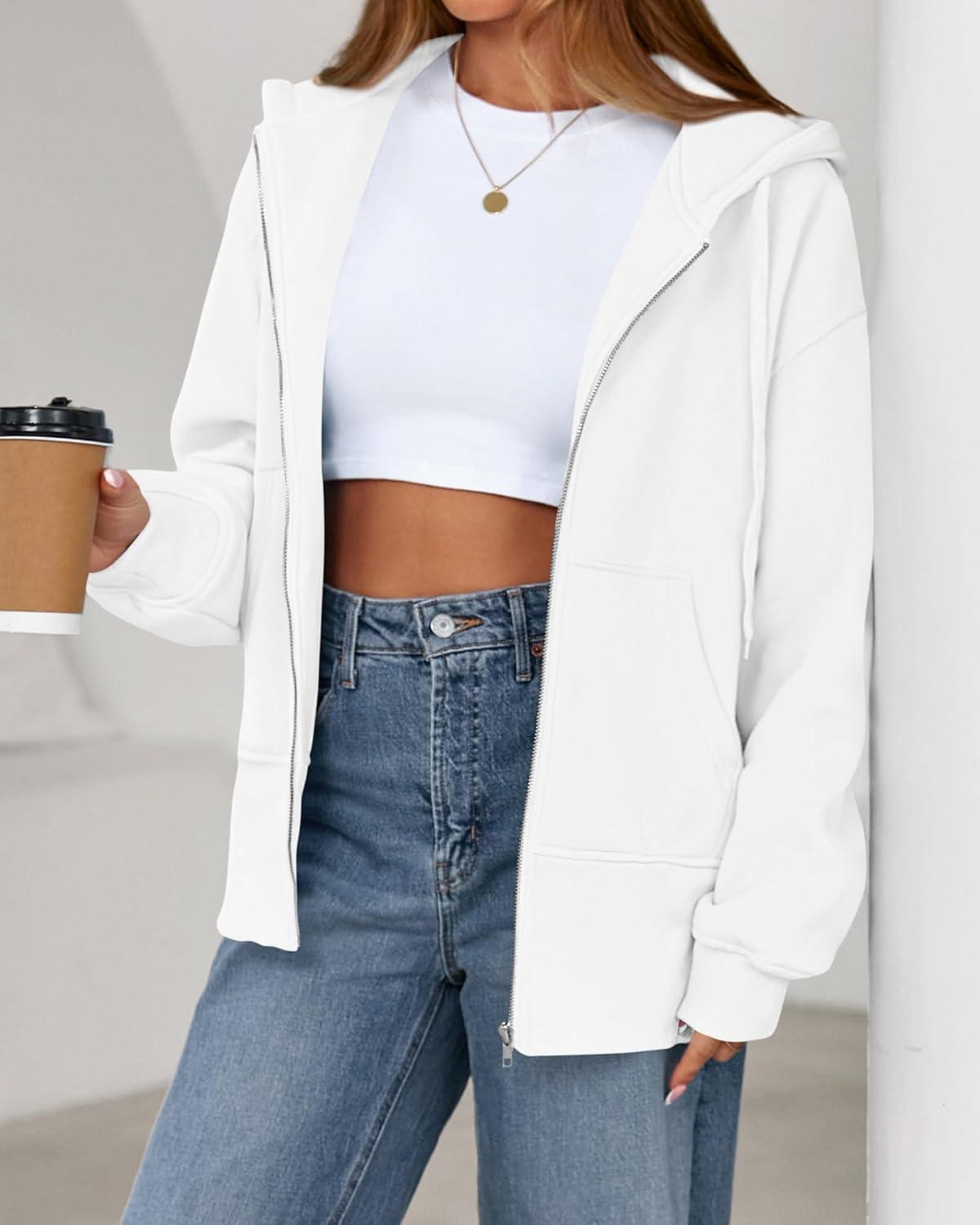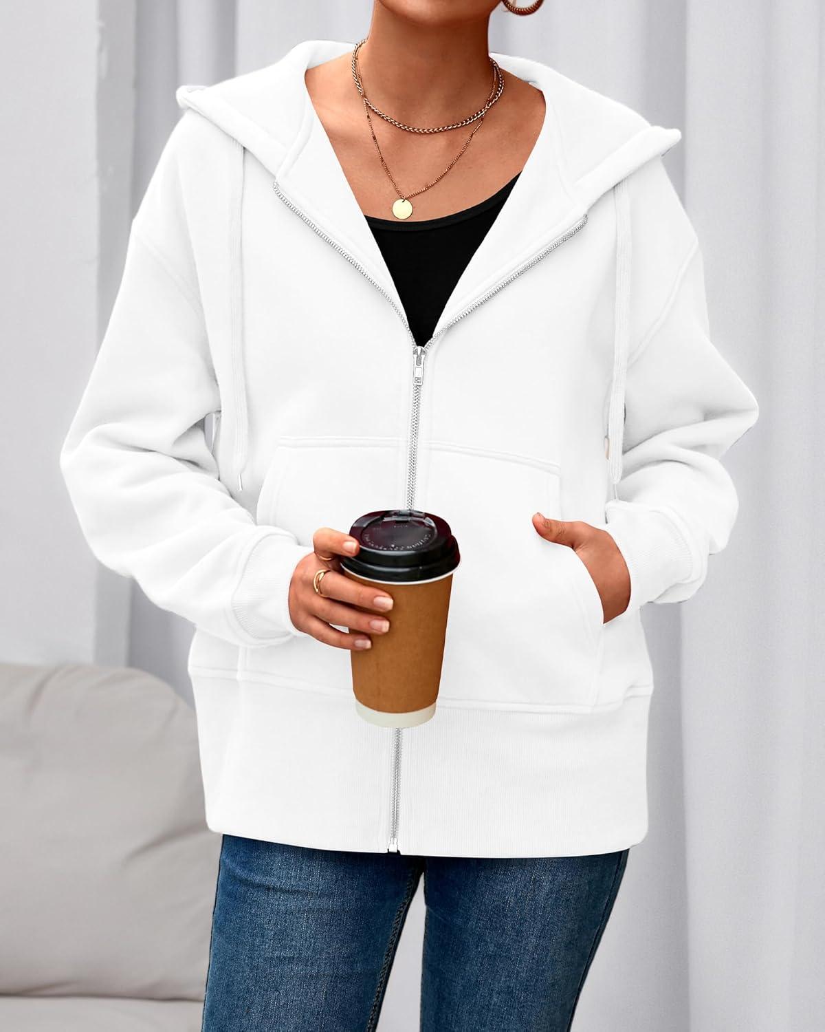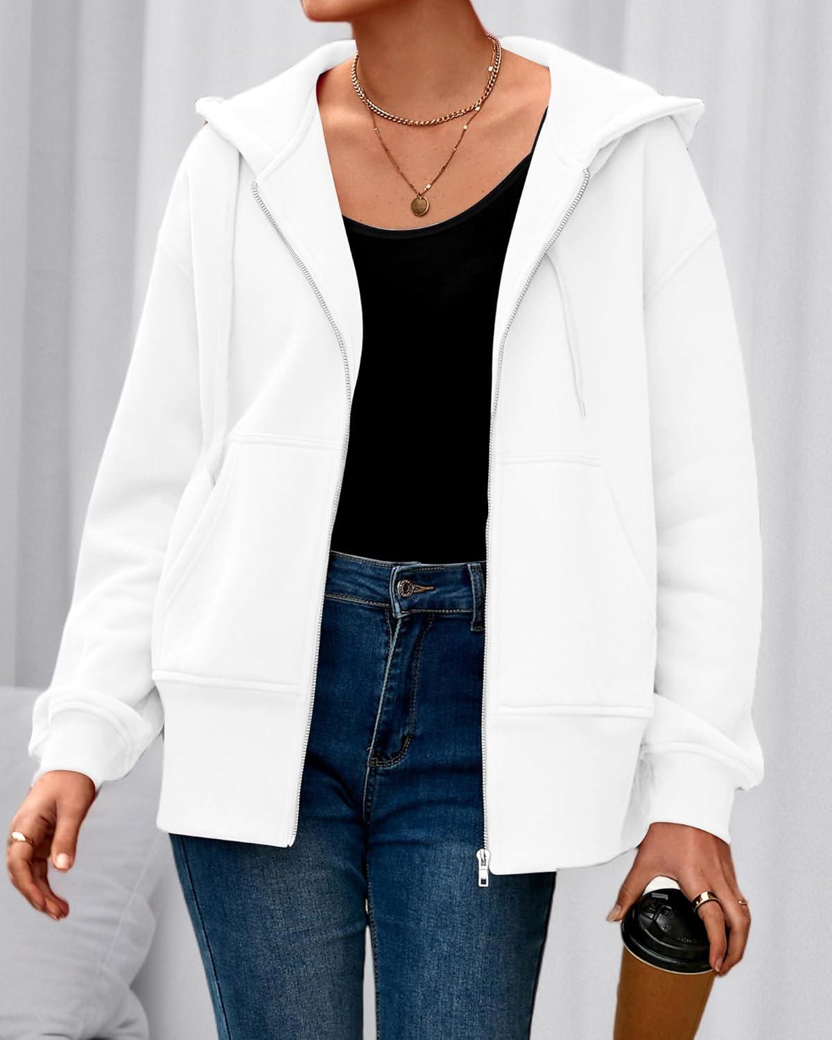 BTFBM Hoodies for Women Zip Up jacket Drawstring Spring Fashion 2026 Trendy Long Sleeve Sweatshirt Clothing Outfits(White)