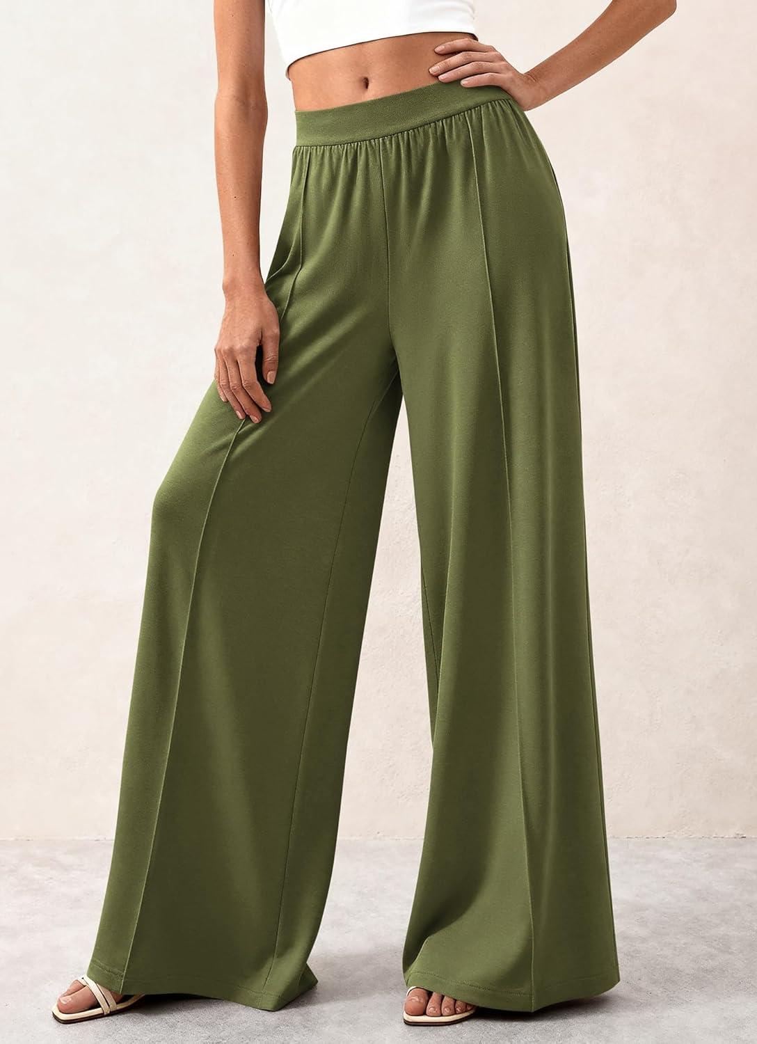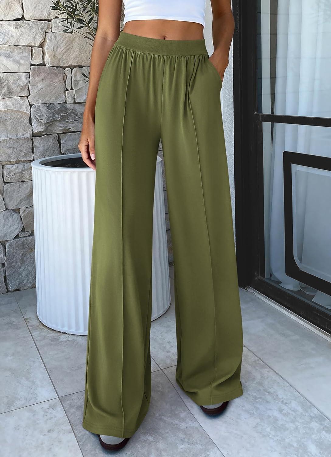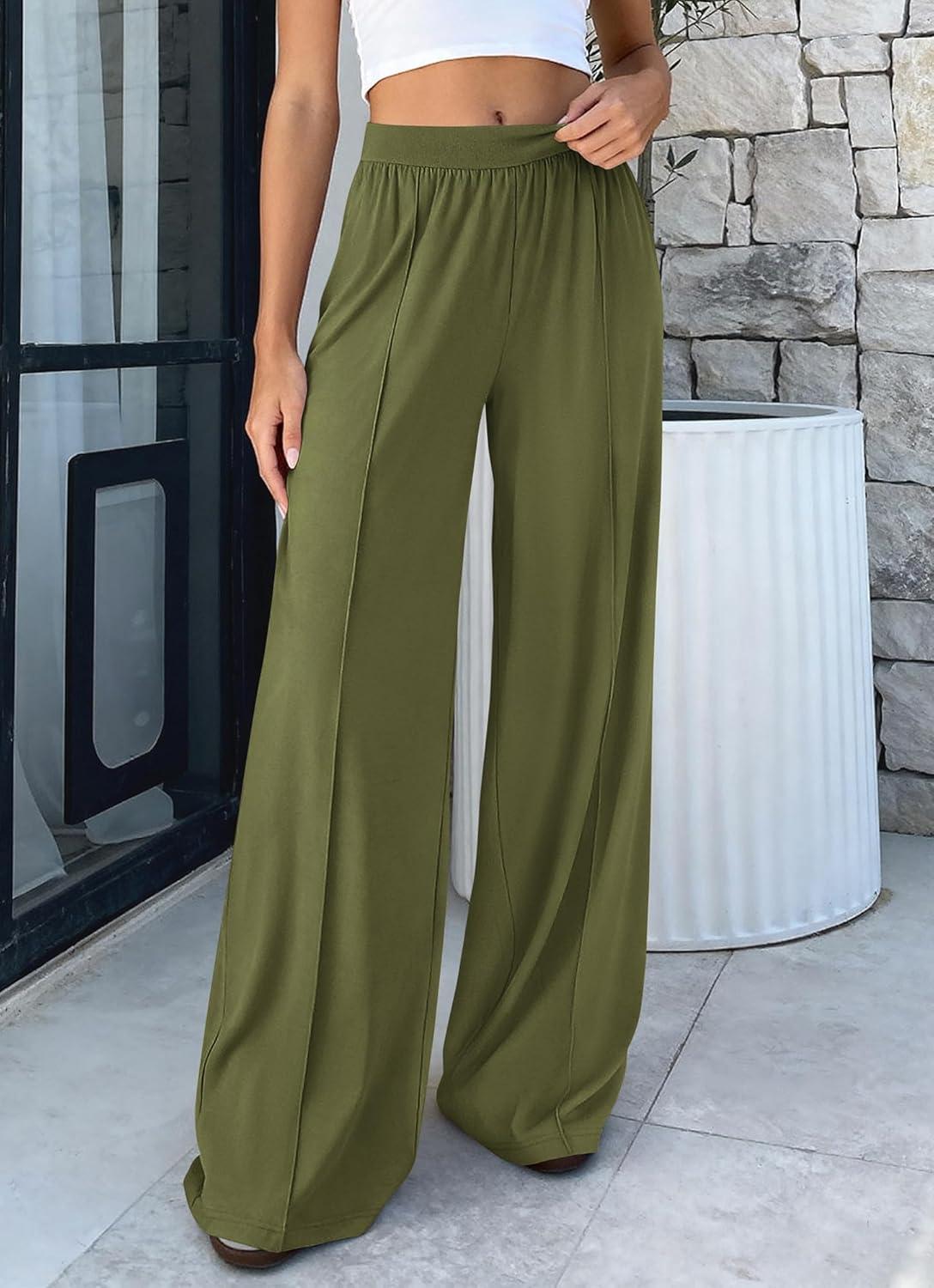 BTFBM Palazzo Pants for Women 2026 Spring Summer Casual Lounge Pants High Waist Flowy Trousers Baggy Wide Leg Pants(Bean Green)