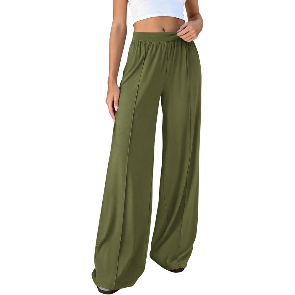 BTFBM Palazzo Pants for Women 2026 Spring Summer Casual Lounge Pants High Waist Flowy Trousers Baggy Wide Leg Pants(Army Green)