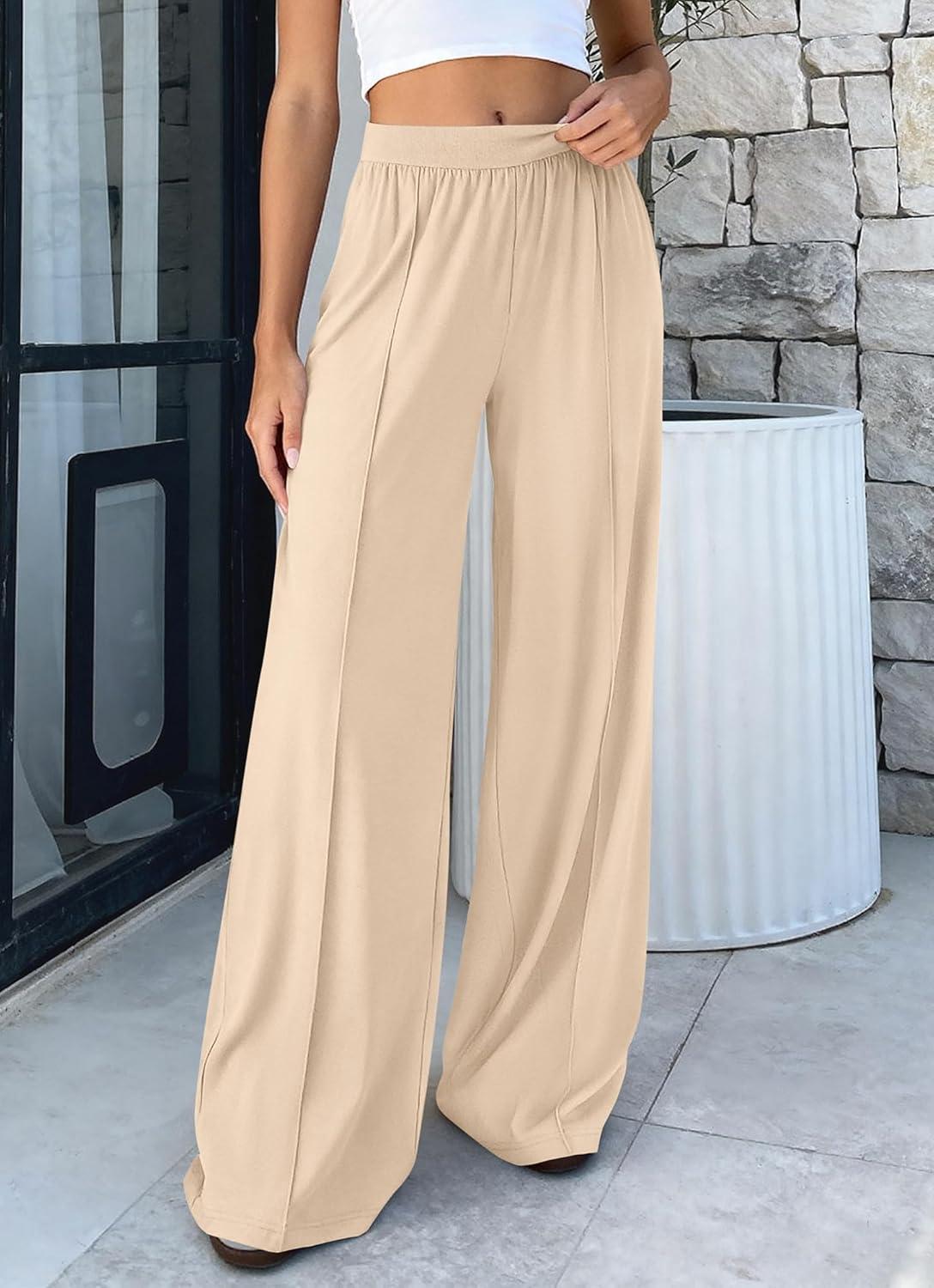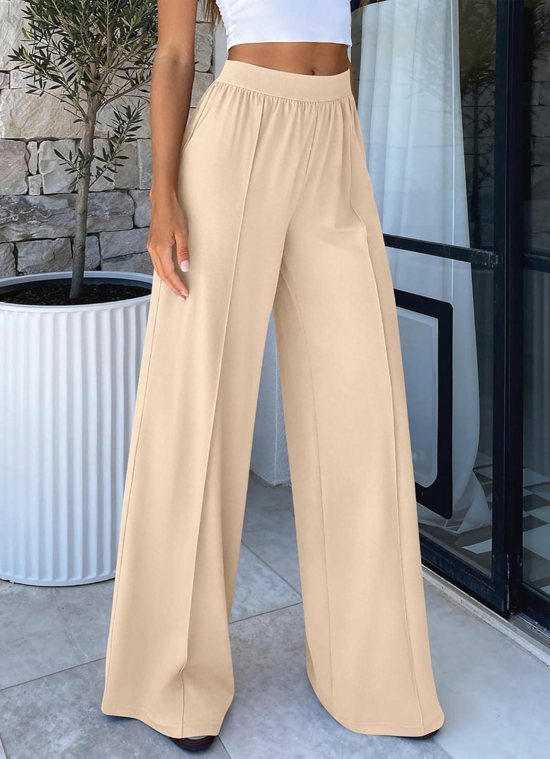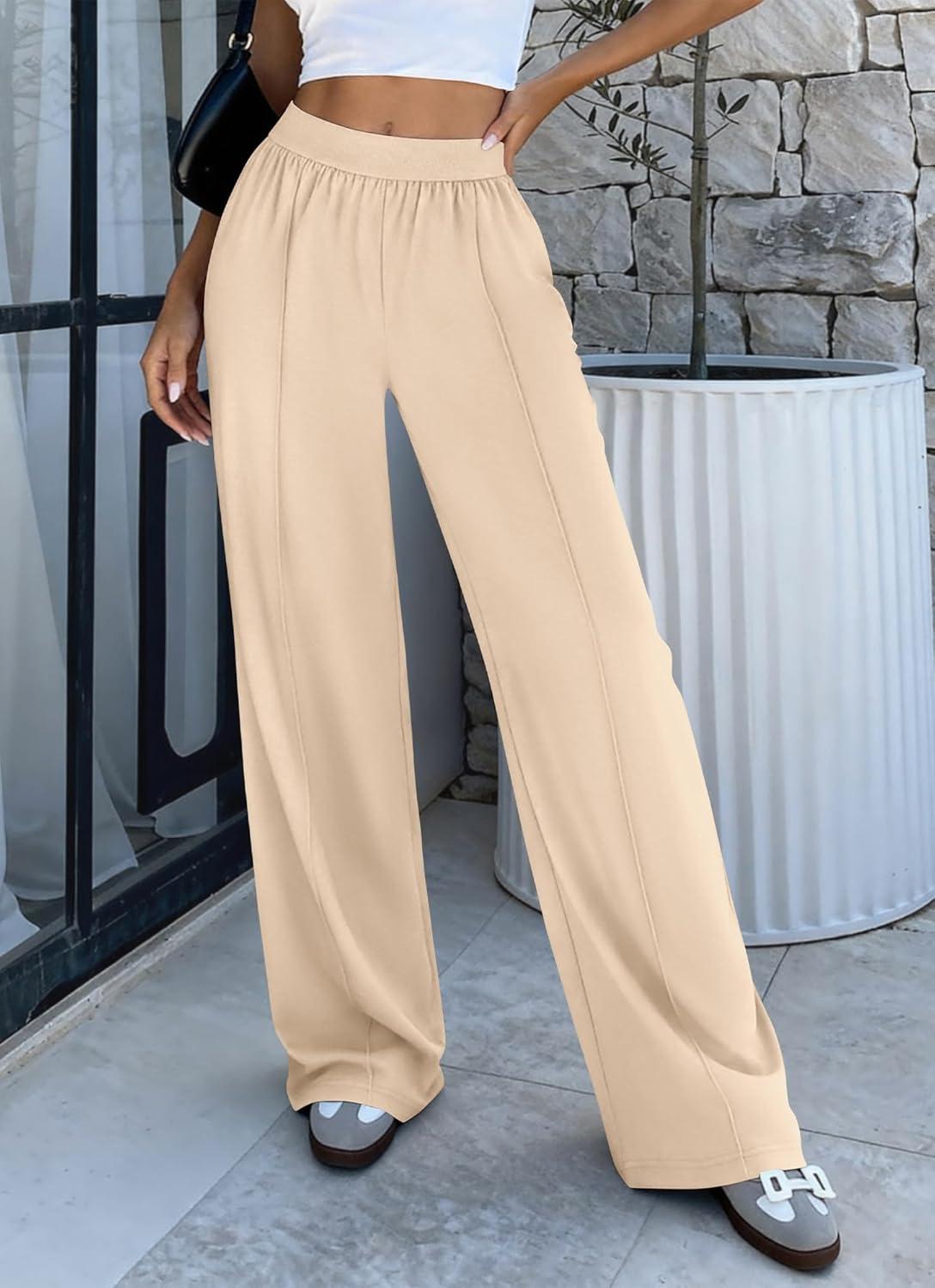 BTFBM Palazzo Pants for Women 2026 Spring Summer Casual Lounge Pants High Waist Flowy Trousers Baggy Wide Leg Pants(Beige)
