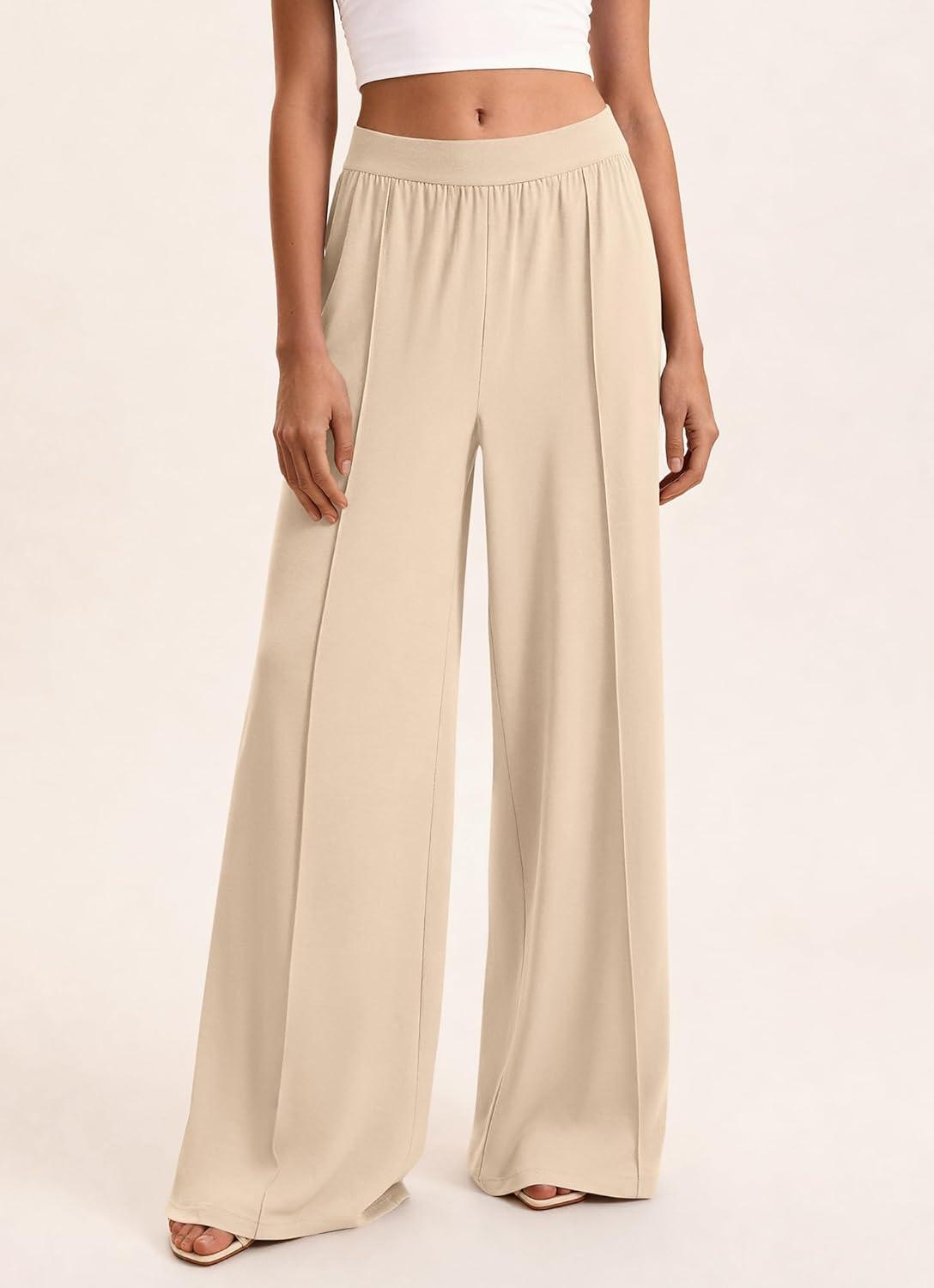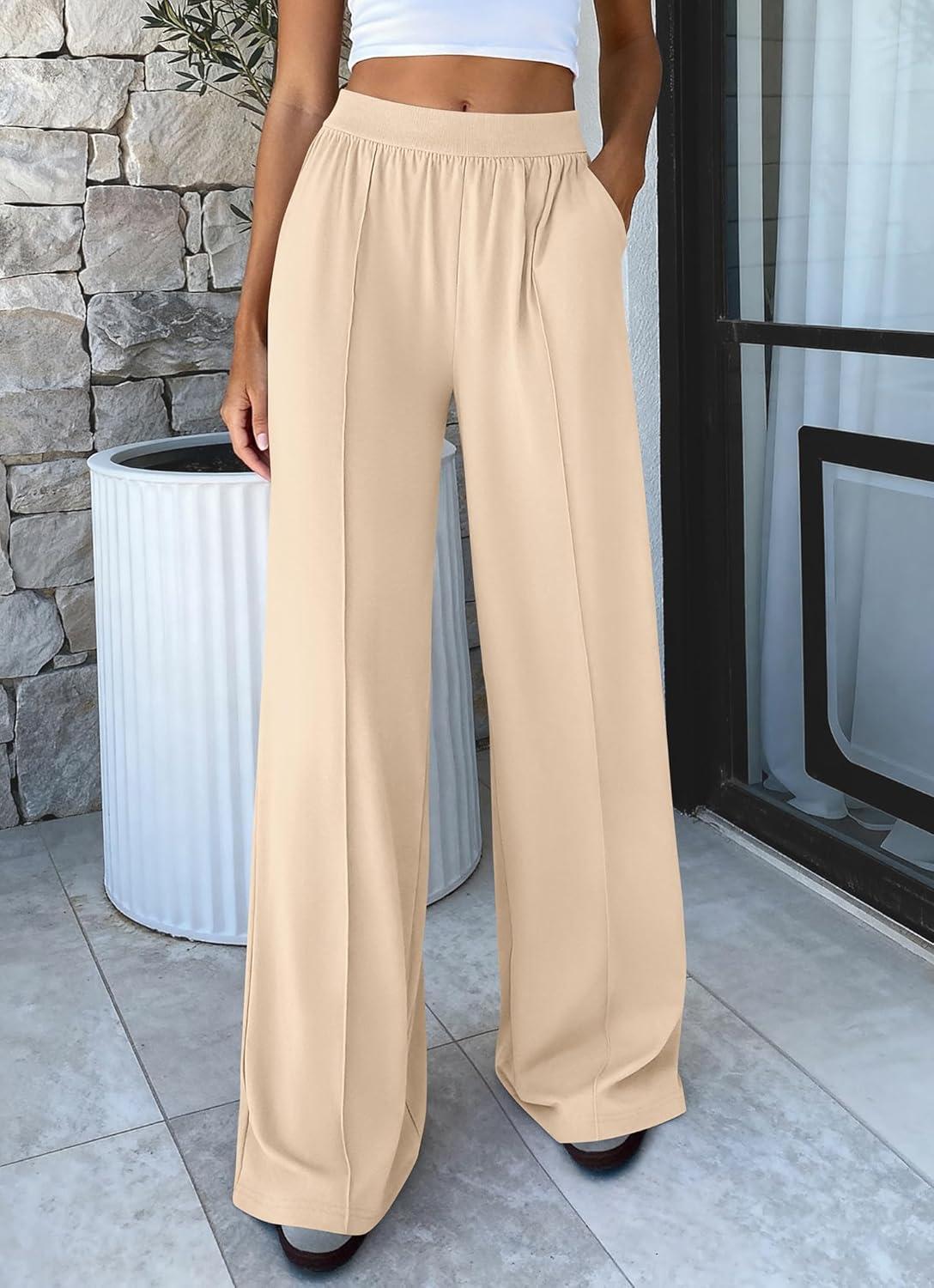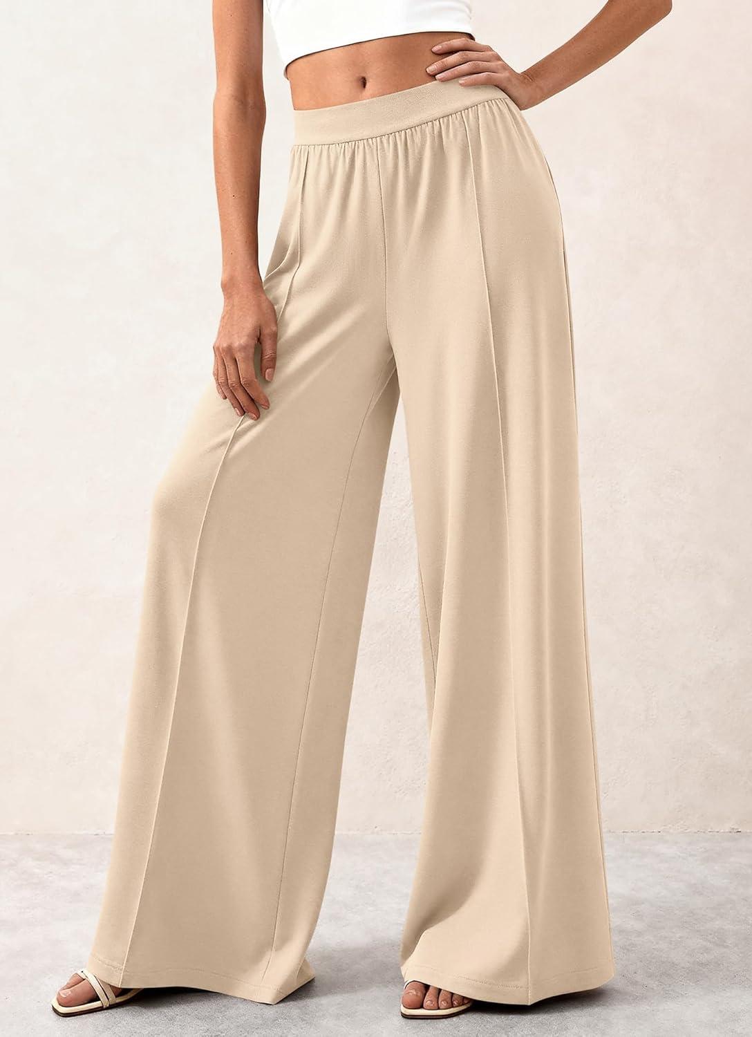 BTFBM Palazzo Pants for Women 2026 Spring Summer Casual Lounge Pants High Waist Flowy Trousers Baggy Wide Leg Pants(Beige)