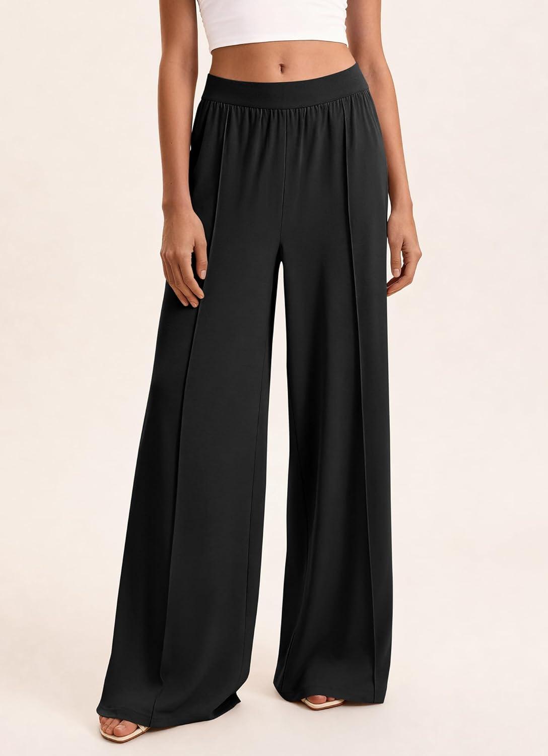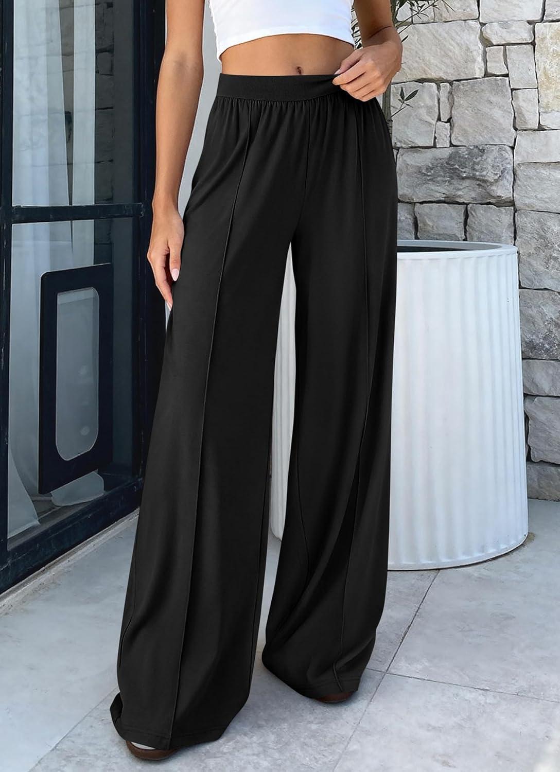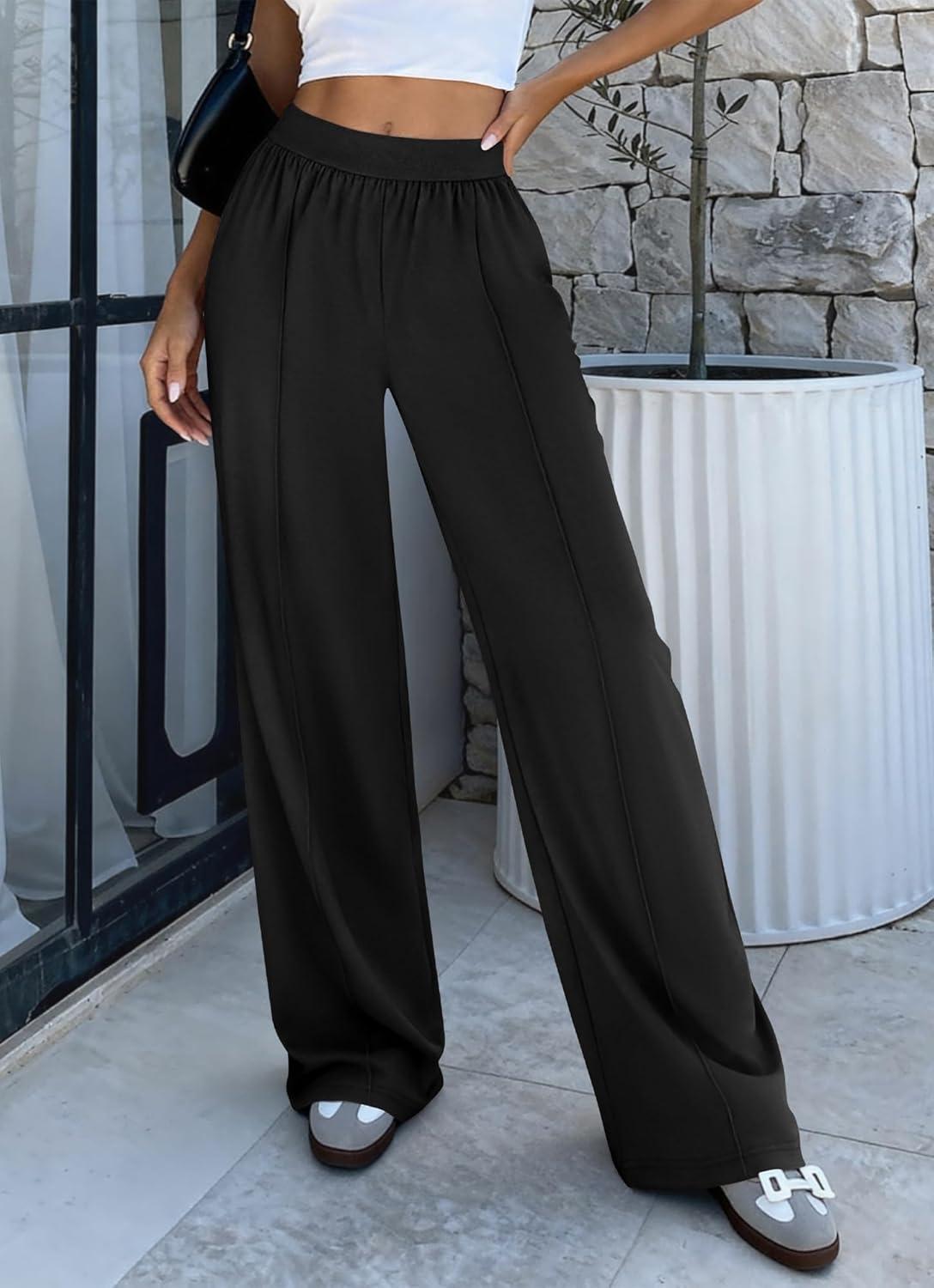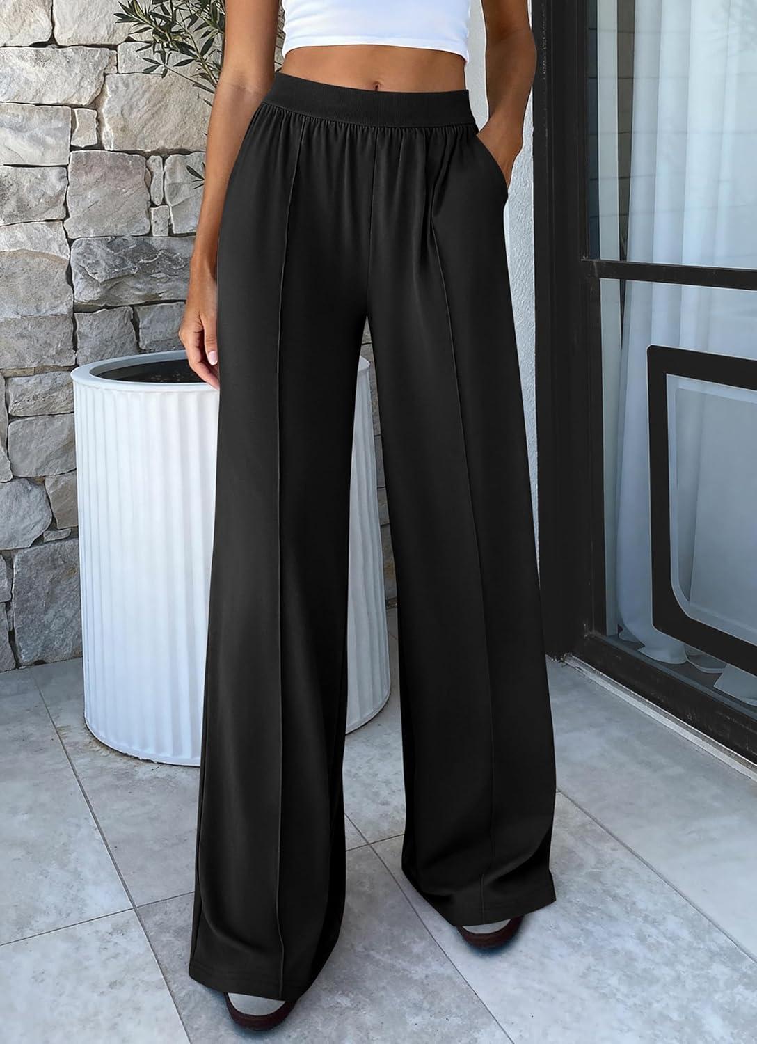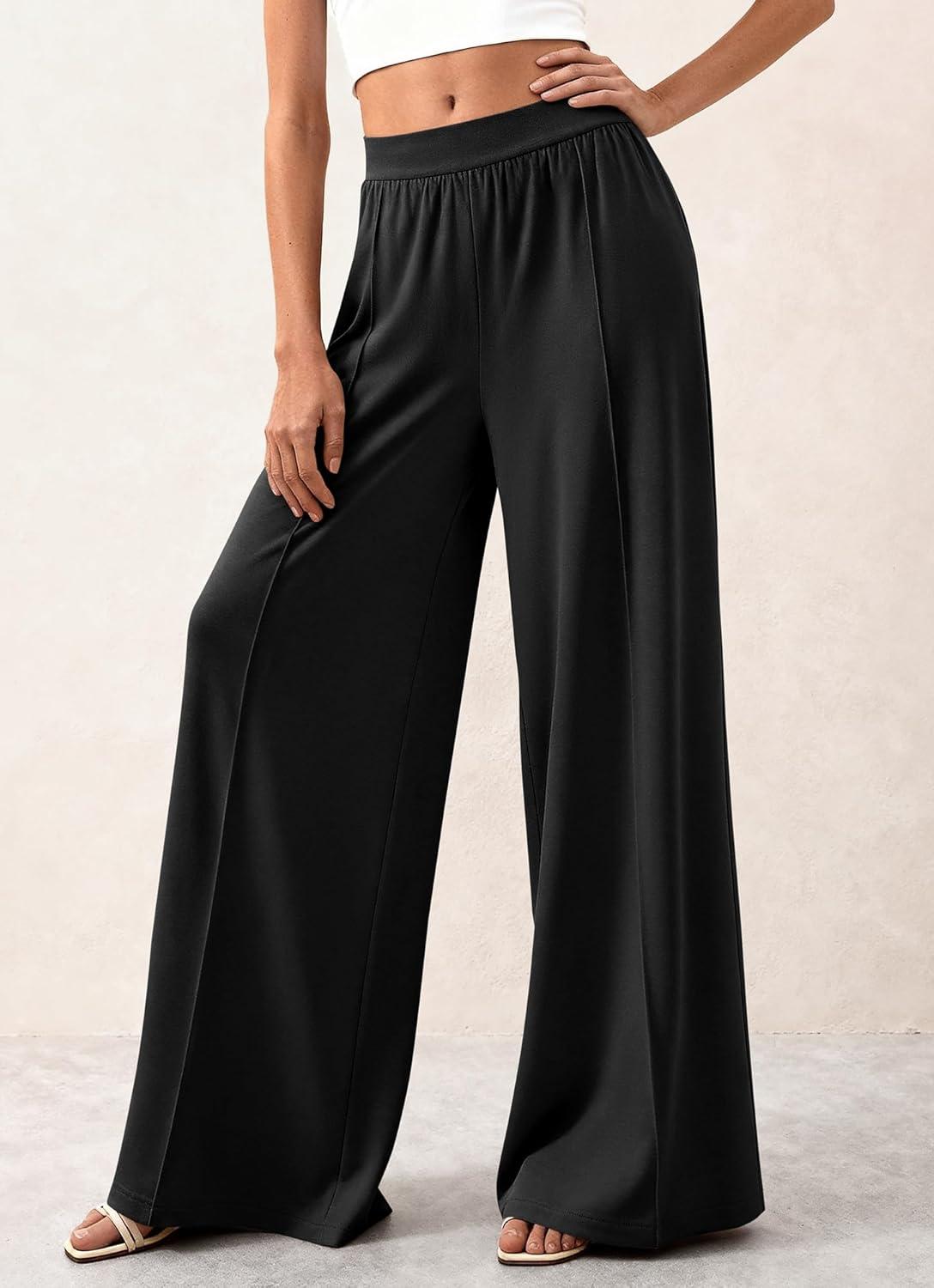 BTFBM Palazzo Pants for Women 2026 Spring Summer Casual Lounge Pants High Waist Flowy Trousers Baggy Wide Leg Pants(Black)