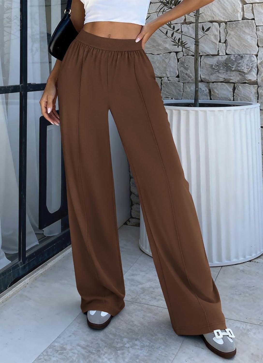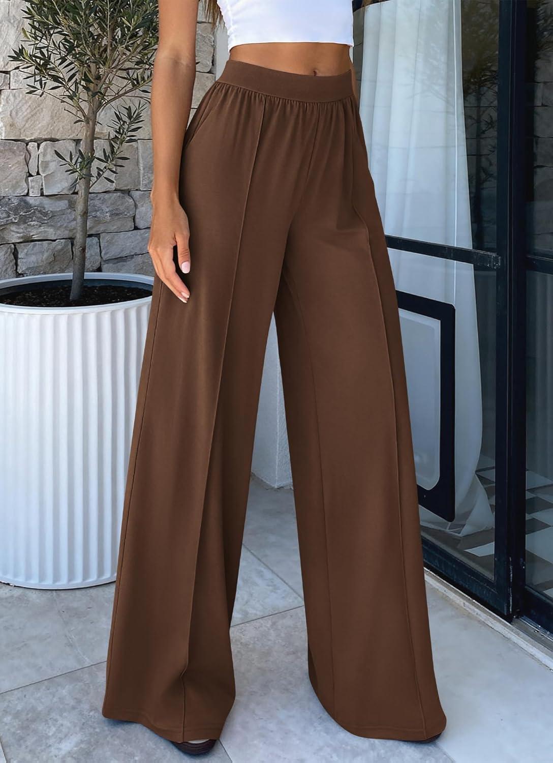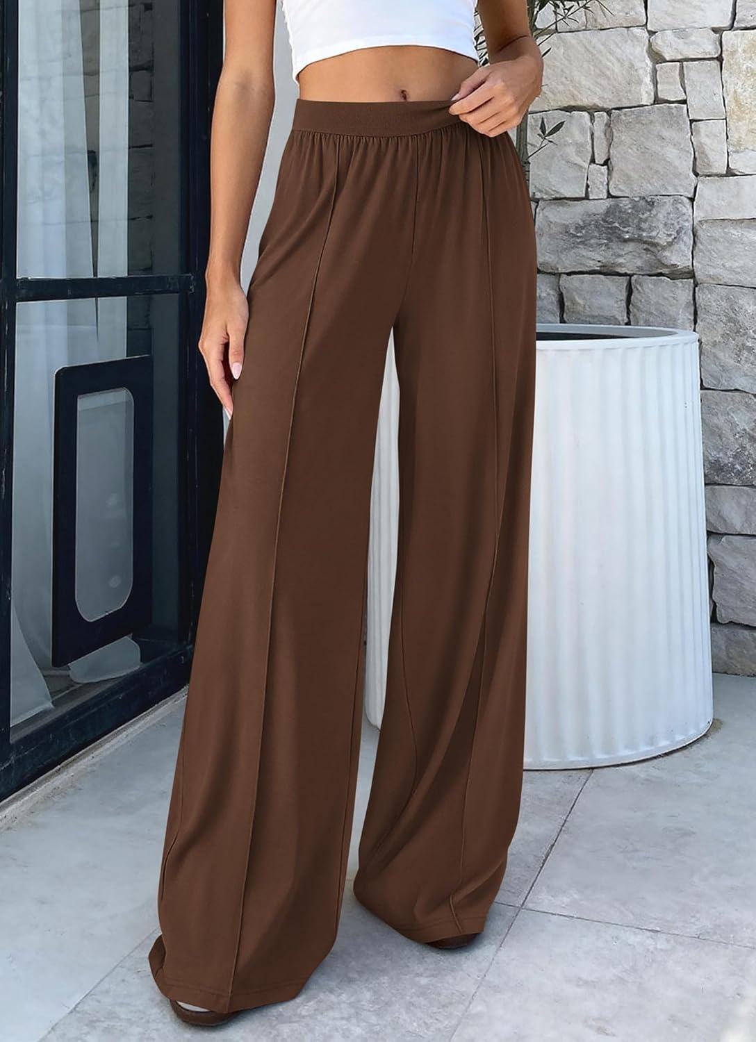 BTFBM Palazzo Pants for Women 2026 Spring Summer Casual Lounge Pants High Waist Flowy Trousers Baggy Wide Leg Pants(Brown)