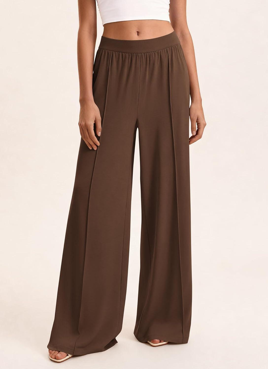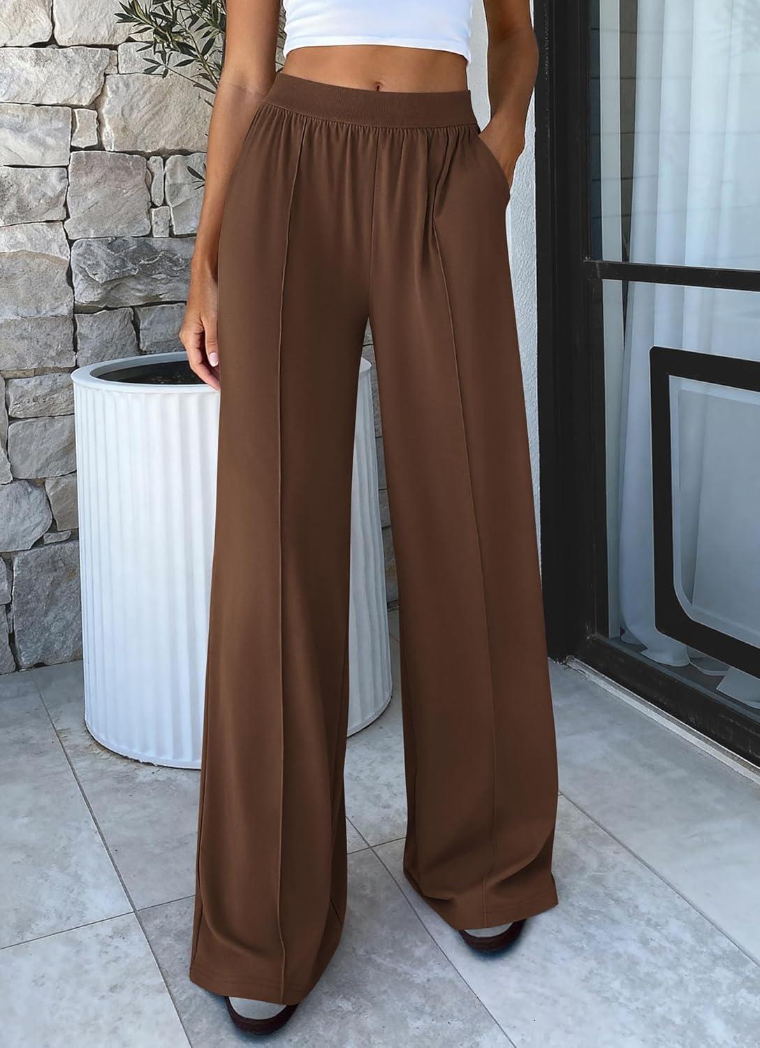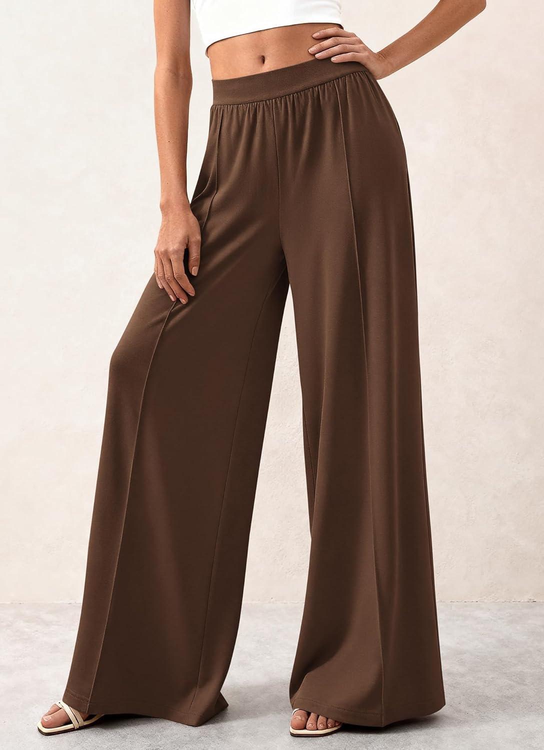 BTFBM Palazzo Pants for Women 2026 Spring Summer Casual Lounge Pants High Waist Flowy Trousers Baggy Wide Leg Pants(Brown)
