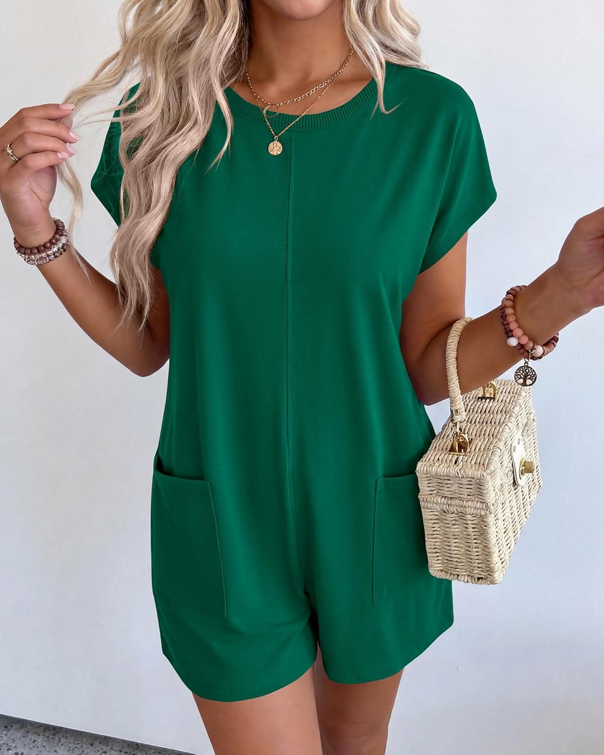 BTFBM Rompers for Women Summer 2026 Casual Dressy One Piece Shorts Tshirt Pants Jumpsuit Beach Vacation Clothes Outfit(Green)