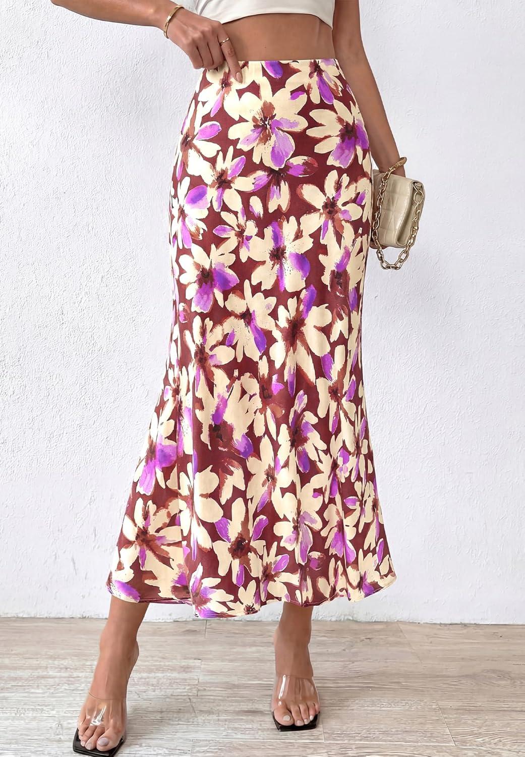 Be the first to review “BTFBM Satin Skirts for Women Trendy Spring Summer 2026 High Waisted Leopard Print Cocktail Wedding Long Silk Midi Skirt(Floral Brown Beige)”