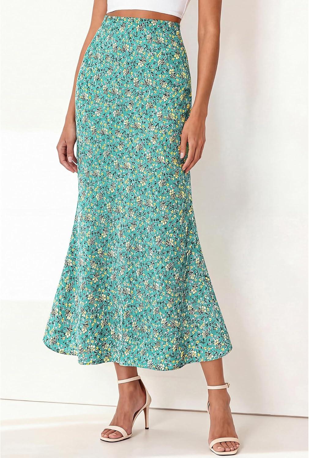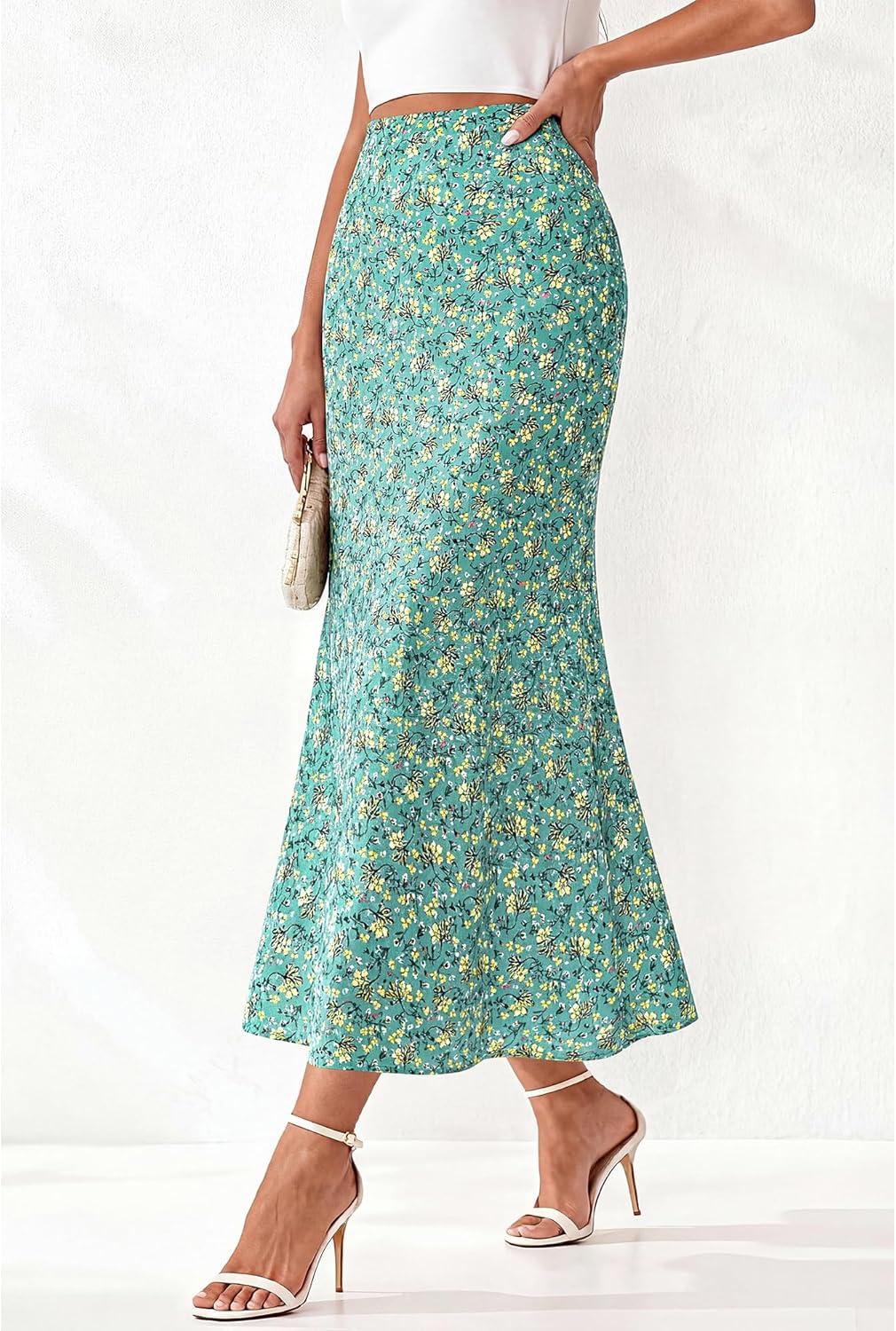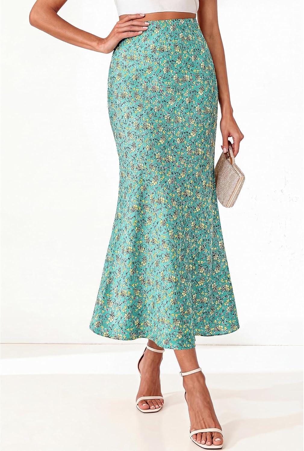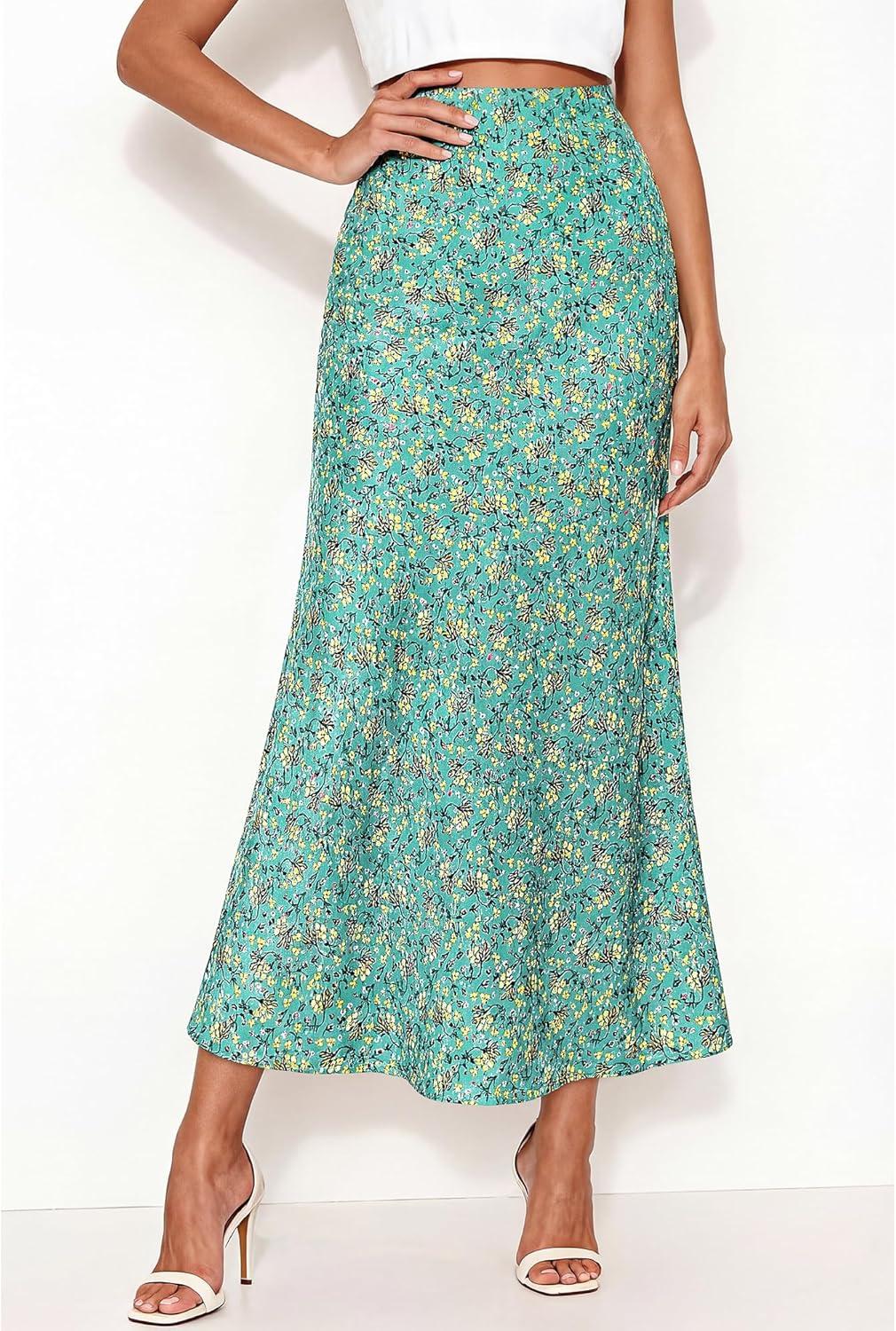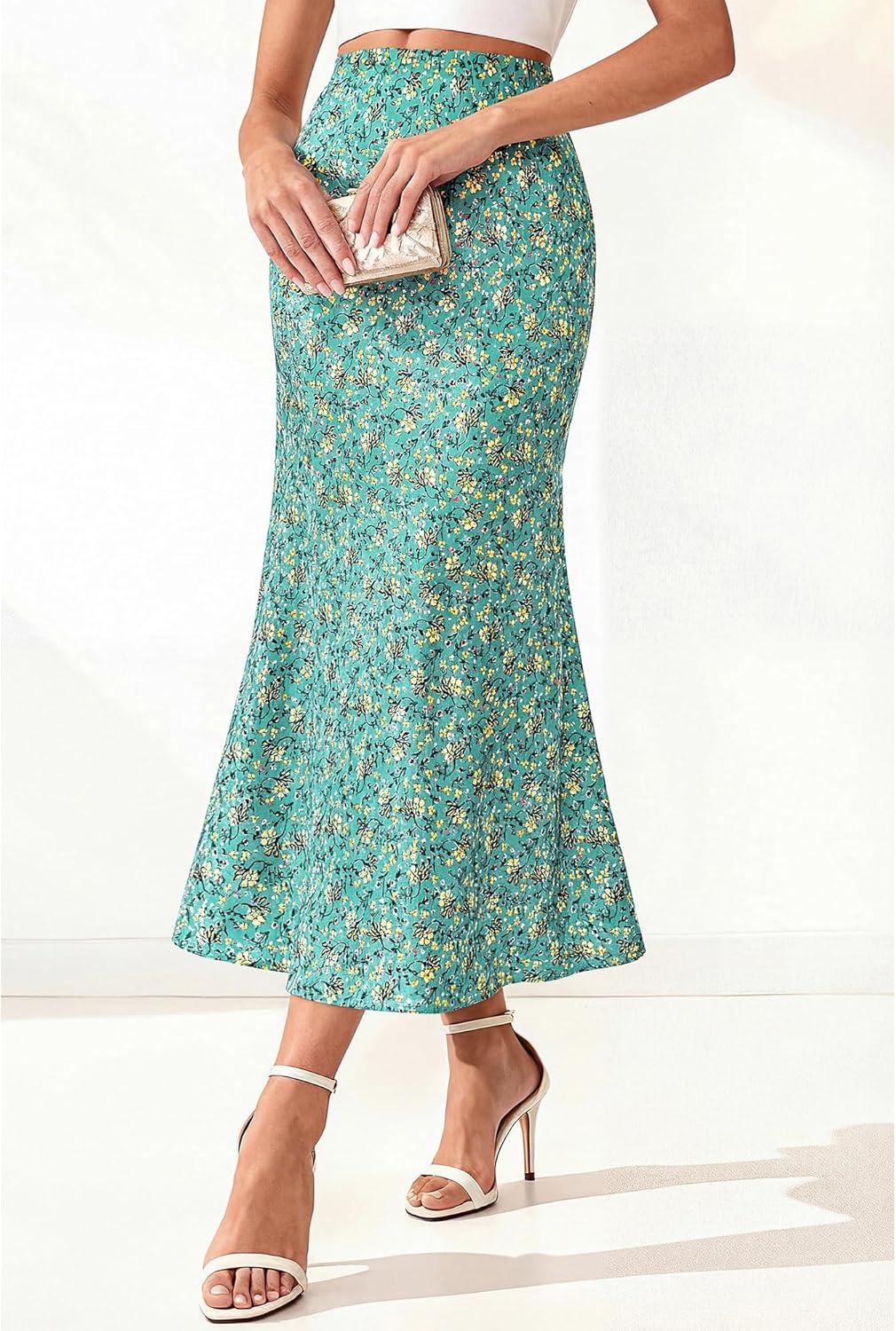 BTFBM Satin Skirts for Women Trendy Spring Summer 2026 High Waisted Leopard Print Cocktail Wedding Long Silk Midi Skirt(Lake Blue)
