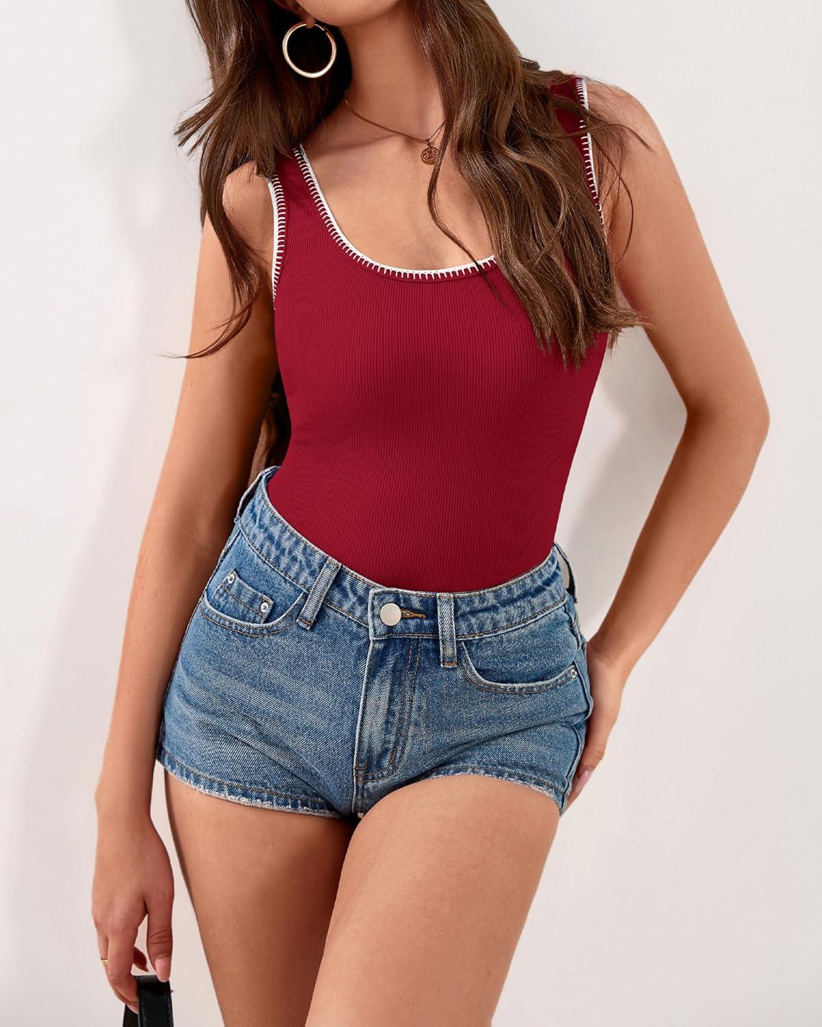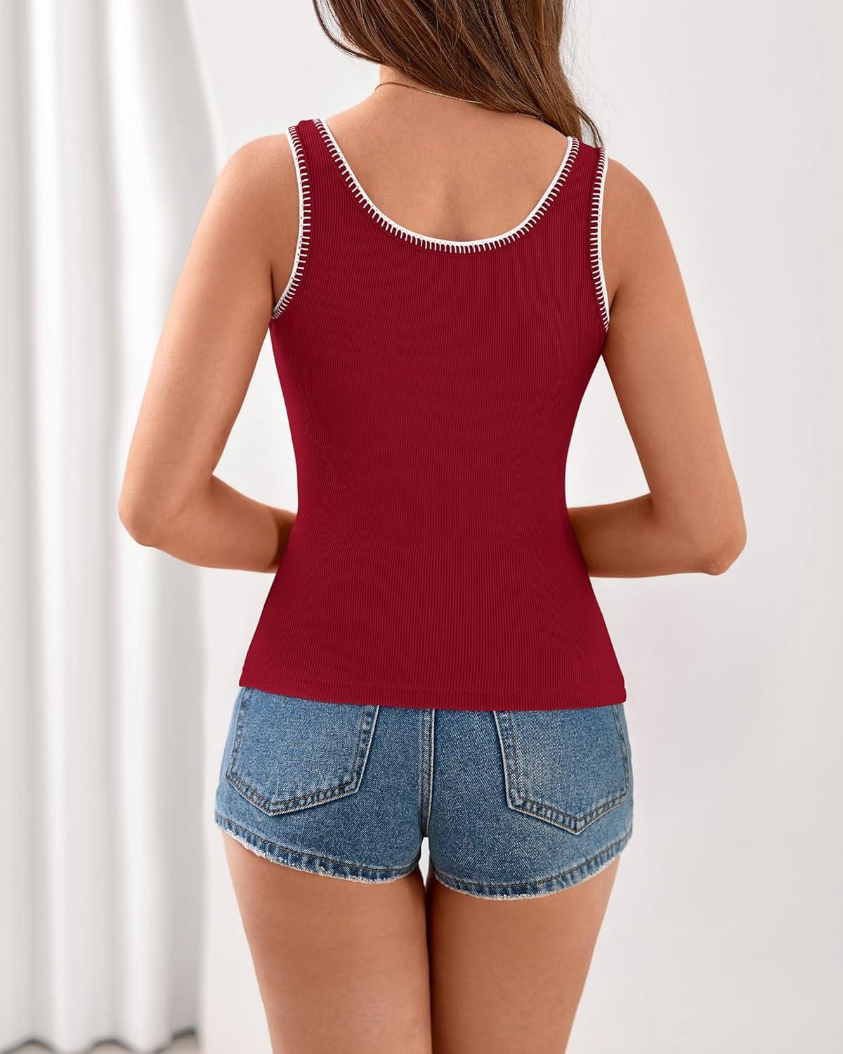 BTFBM Sleeveless Tops for Women 2026 Summer Scoop Neck Tank Ribbed Knit Slim Fit Sweater Vest Casual Beach Vacation(Red)