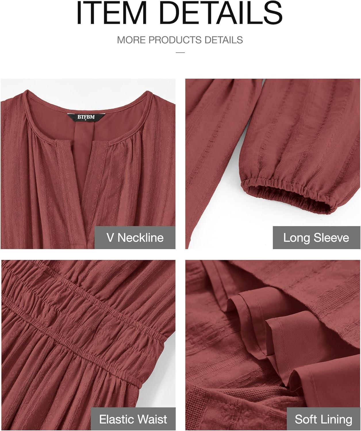 Be the first to review “BTFBM Spring Dresses for Women 2026 Casual Long Sleeve V Neck Elastic Waist Lightweight Maxi Wedding Guest Dress Pockets(Brown Red)”