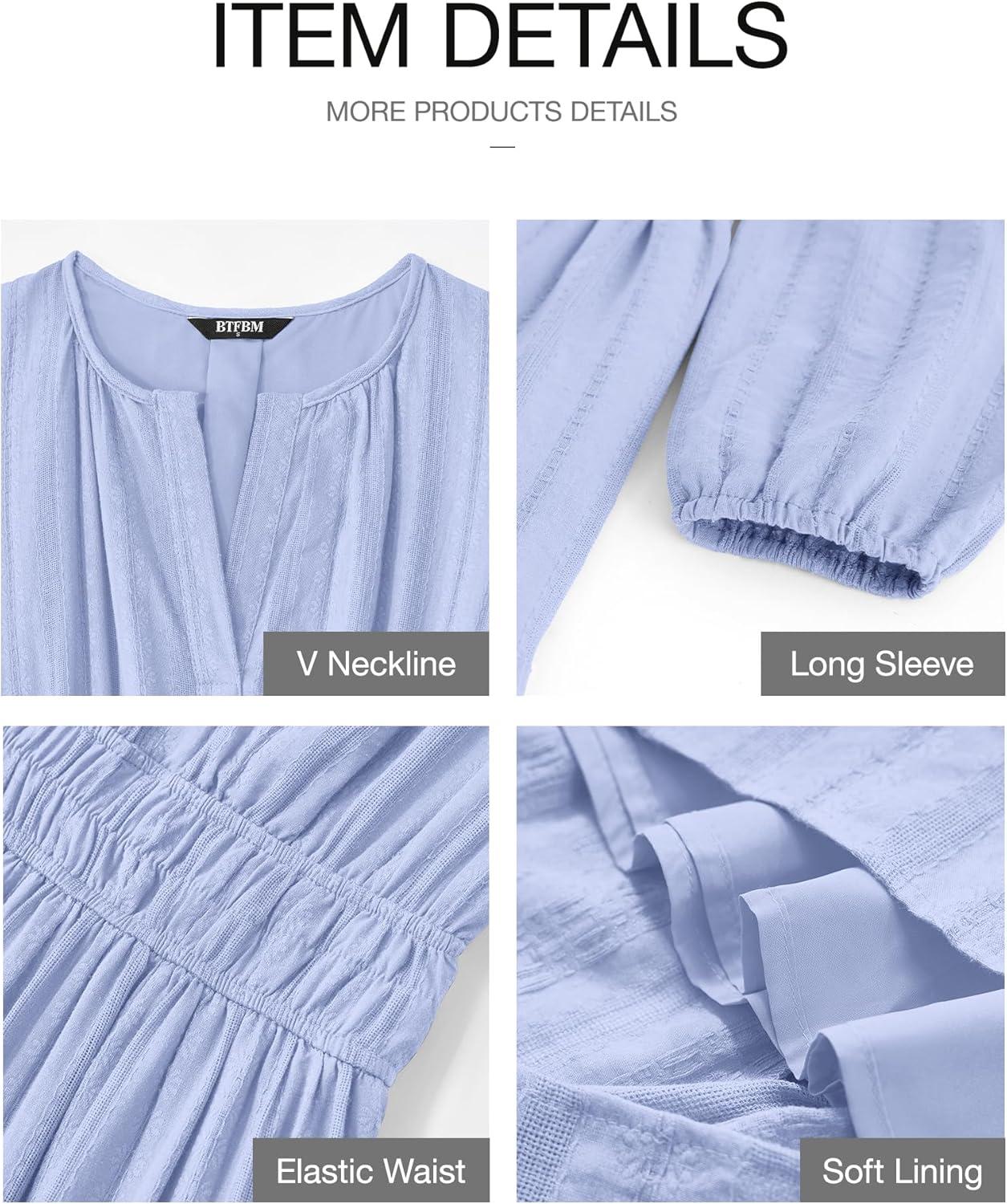 Be the first to review “BTFBM Spring Dresses for Women 2026 Casual Long Sleeve V Neck Elastic Waist Lightweight Maxi Wedding Guest Dress Pockets(Light Blue)”