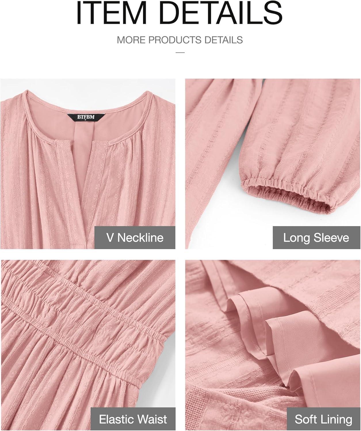 Be the first to review “BTFBM Spring Dresses for Women 2026 Casual Long Sleeve V Neck Elastic Waist Lightweight Maxi Wedding Guest Dress Pockets(Pink)”