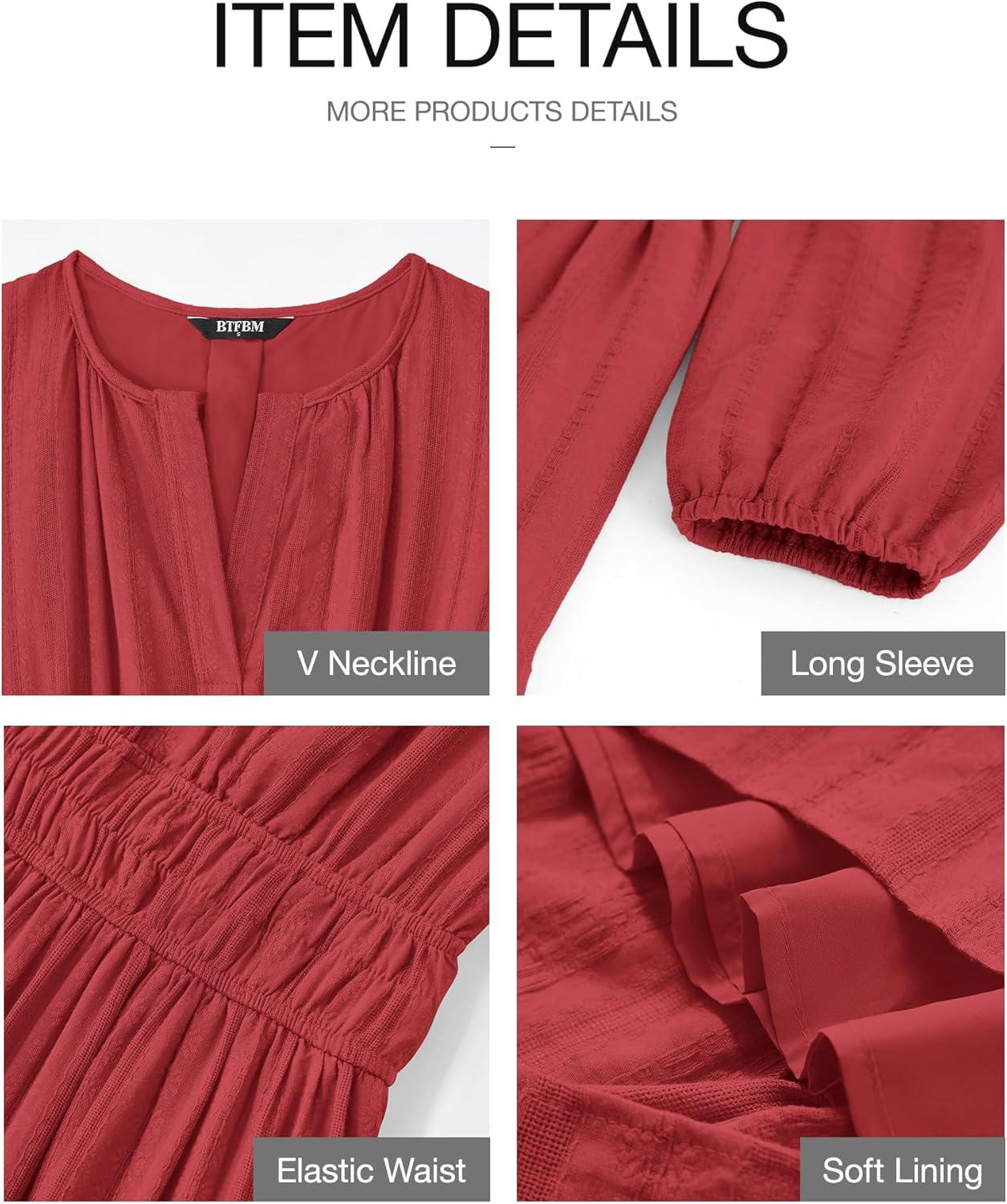 Be the first to review “BTFBM Spring Dresses for Women 2026 Casual Long Sleeve V Neck Elastic Waist Lightweight Maxi Wedding Guest Dress Pockets(Red)”