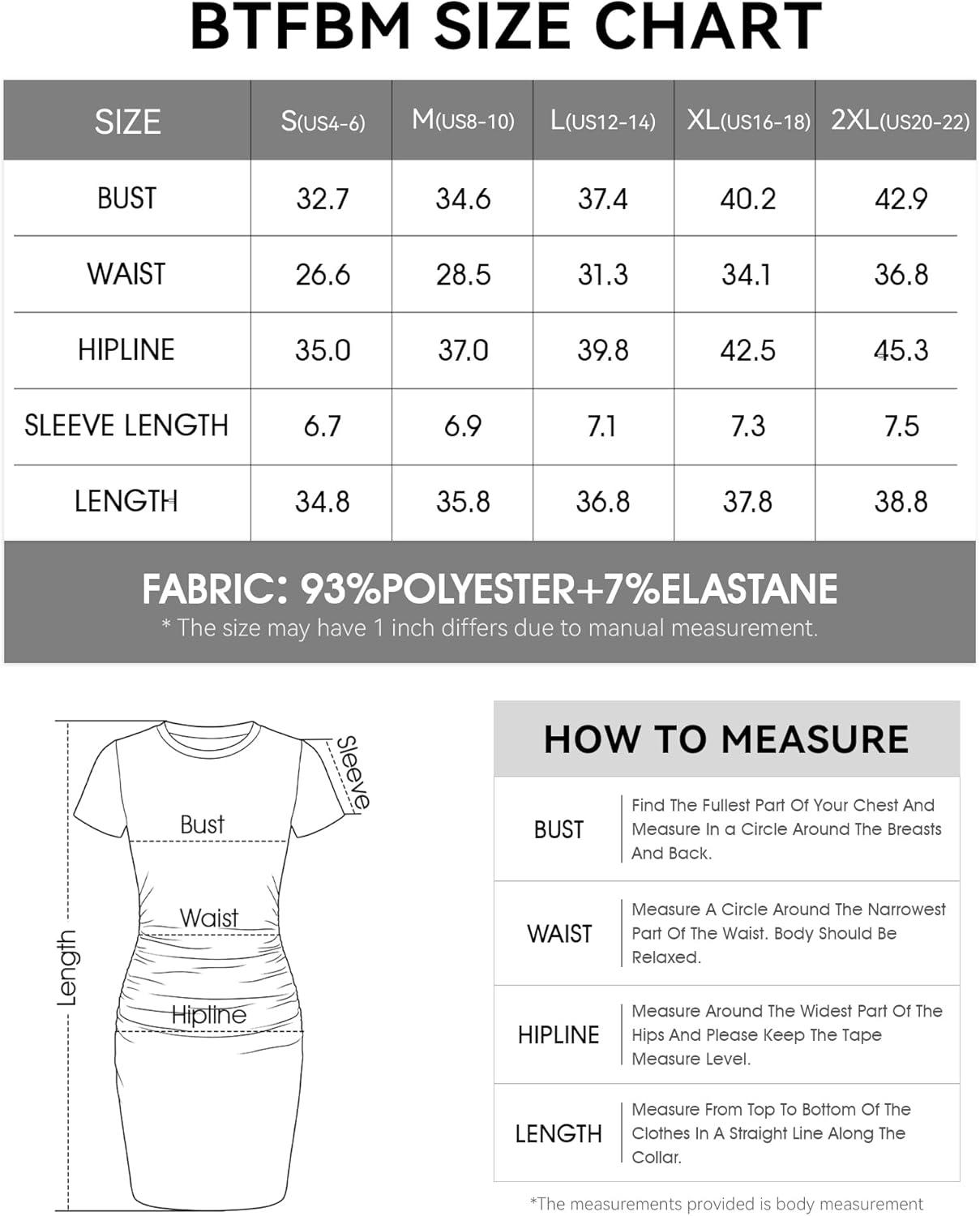 BTFBM Summer Dresses for Women 2026 Short Sleeve Crewneck Bodycon Ruched Spring Tshirt Mini Dress Vacation Casual Outfits(Black)