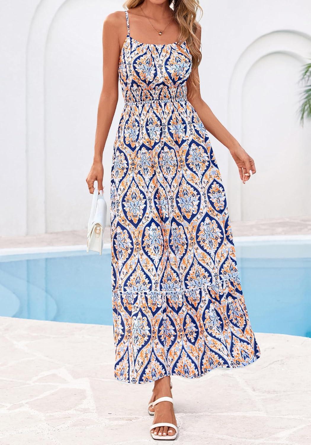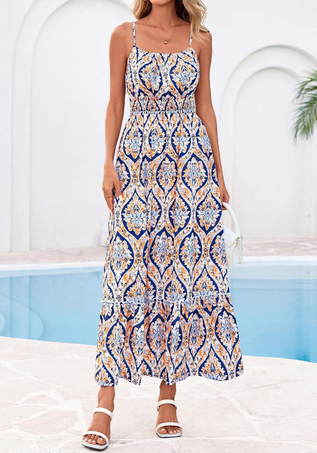 BTFBM Summer Dresses for Women 2026 Sleeveless Spaghetti Strap High Waist Boho Beach Vacation Clothes Spring Maxi Dress(Blue Geometry)