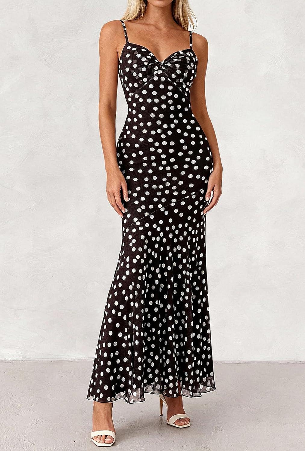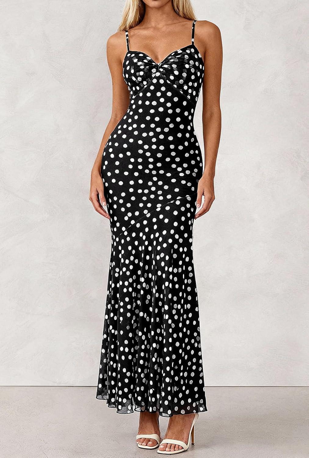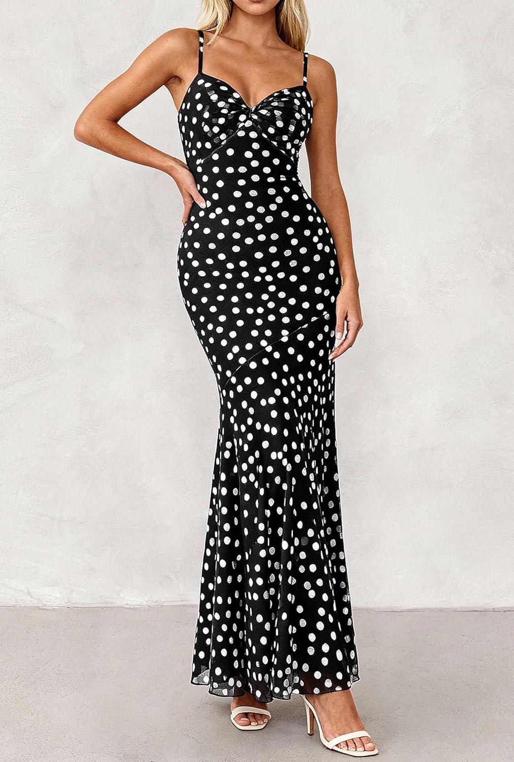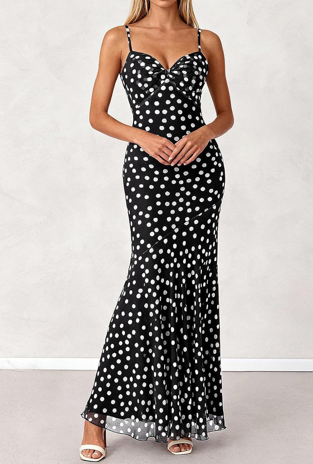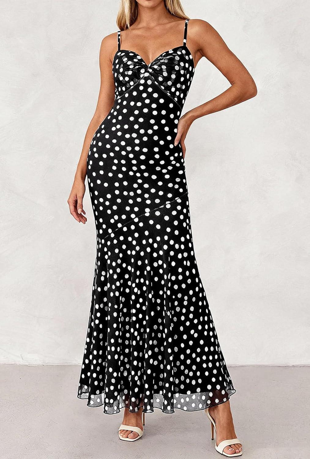 BTFBM Summer Dresses for Women 2026 Spaghetti Straps Sundress Twist Knot Mesh Mermaid Wedding Guest Dress Beach Vacation(Small Polk Black)