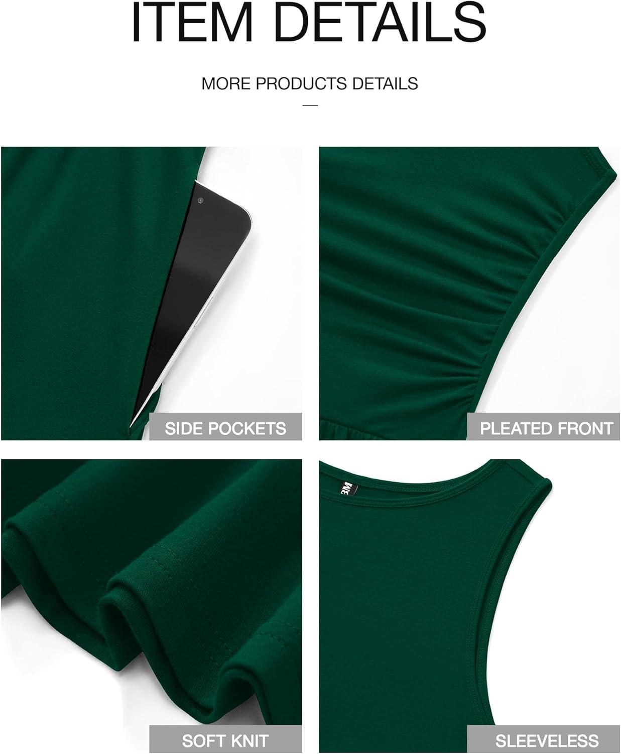 imageBTFBM Summer Maxi Dresses for Women 2026 Spring Sleeveless Casual Ruched High Waisted Long Sundress Flowy Beach DressDark Green
