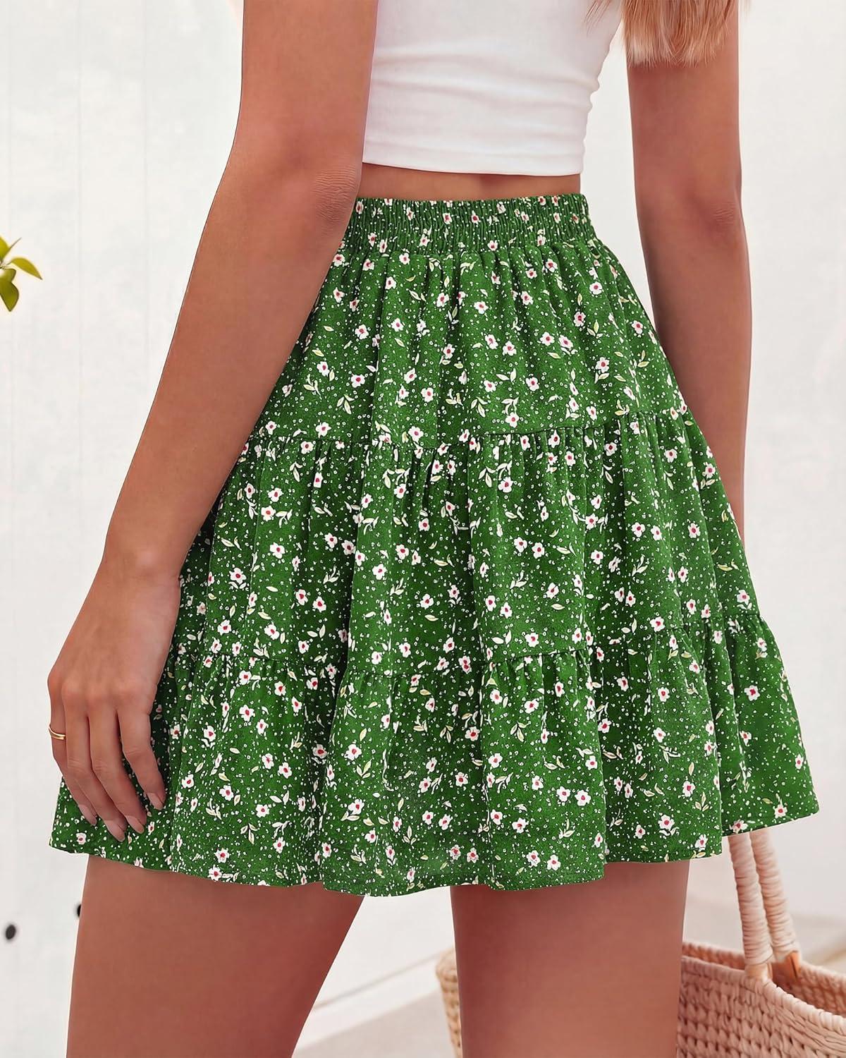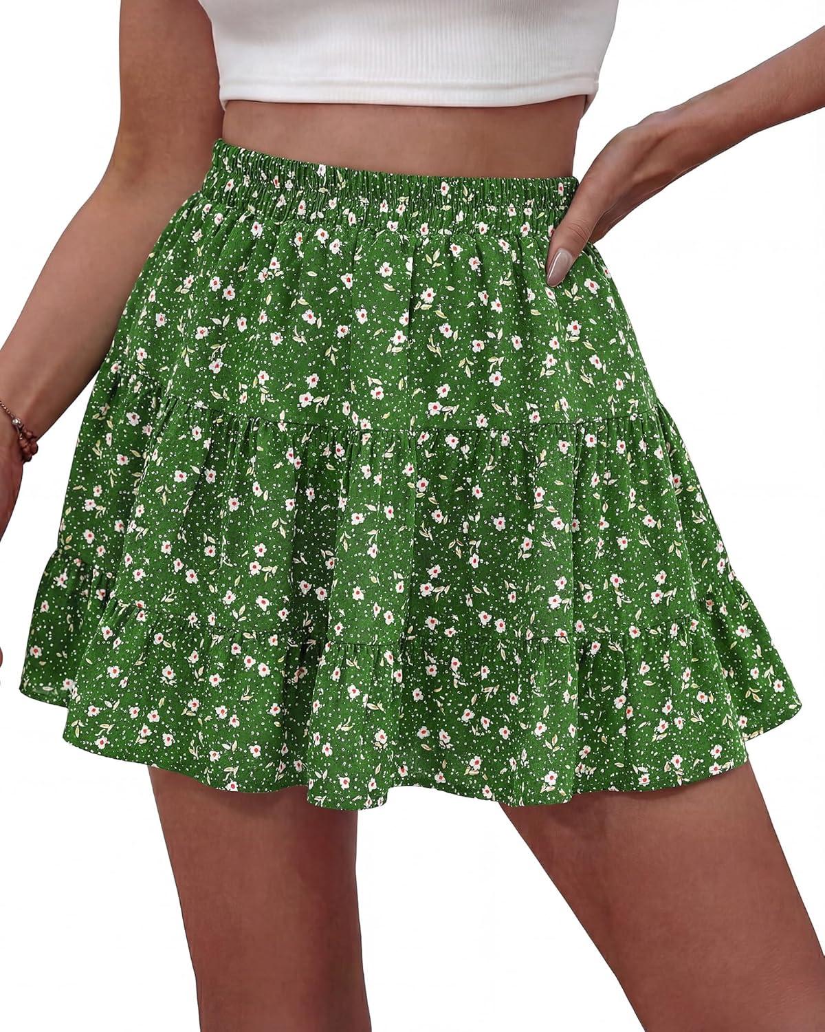 BTFBM Summer Skirts for Women 2026 Floral High Waist Shorts Underneath Boho Tiered Flowy Tennis Skorts Casual Mini Skirt(Floral Green)