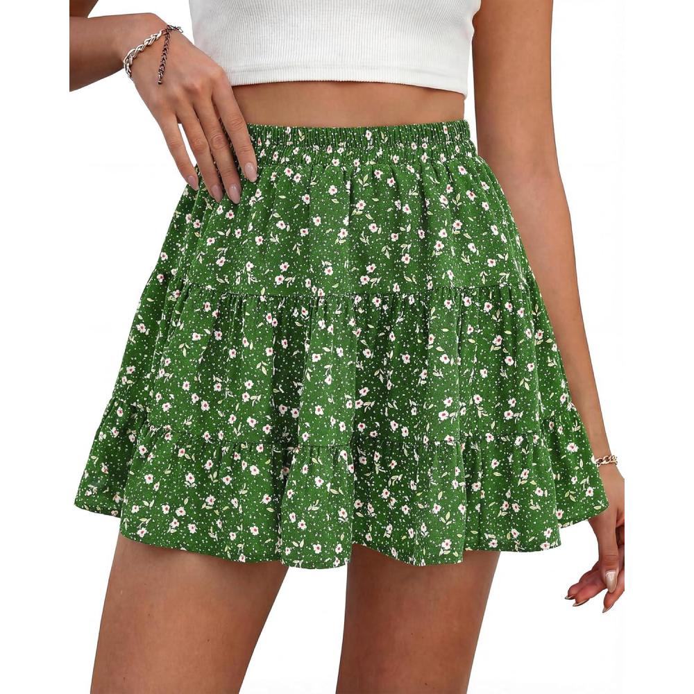 BTFBM Summer Skirts for Women 2026 High Waist Flowy Shorts Underneath Boho Tiered Floral Tennis Skorts Casual Mini Skirt(Floral Green)