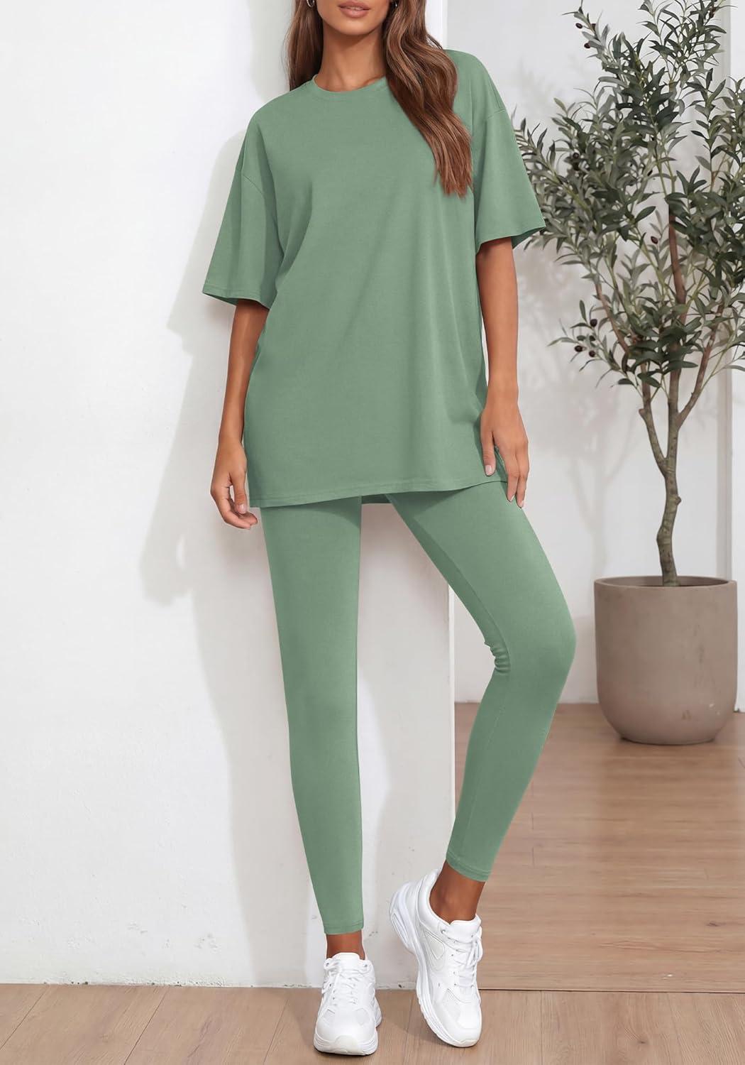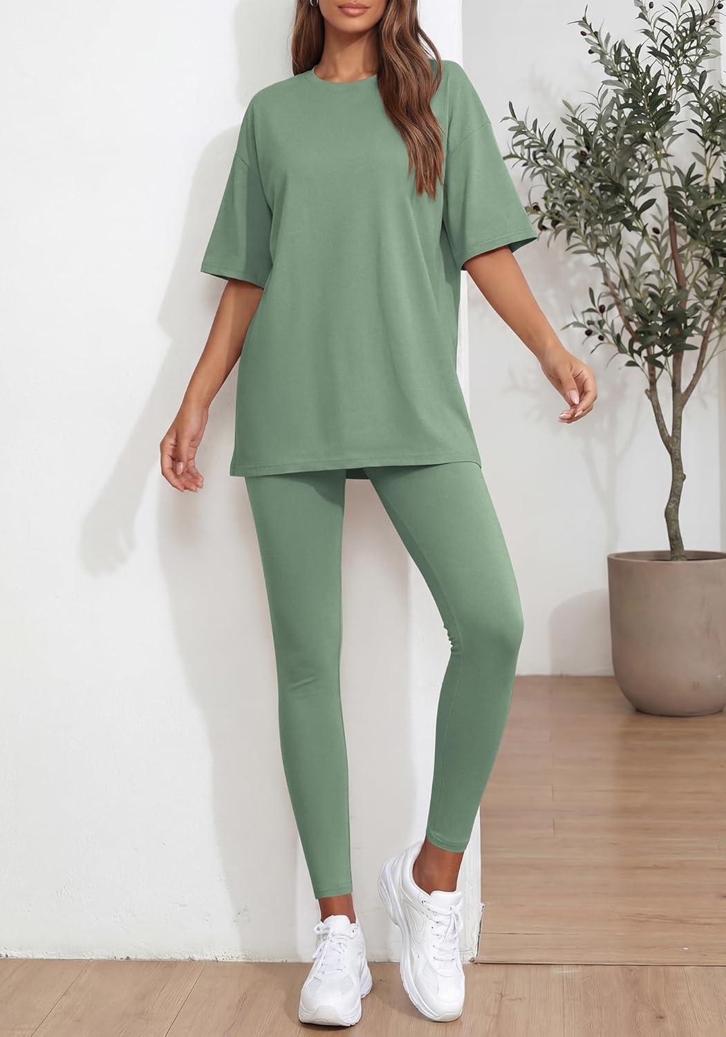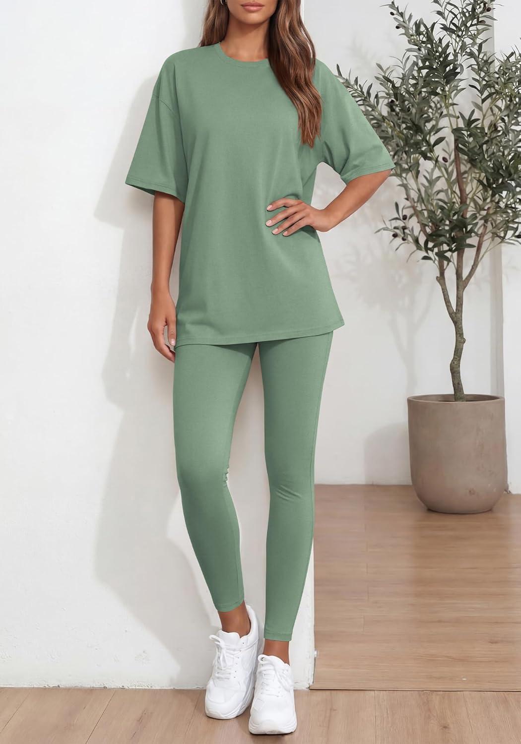 BTFBM Two Piece Lounge Set Women 2026 Spring Casual Oversized Shirts Leggings Matching Workout Airport Travel Outfits(Sage Green)