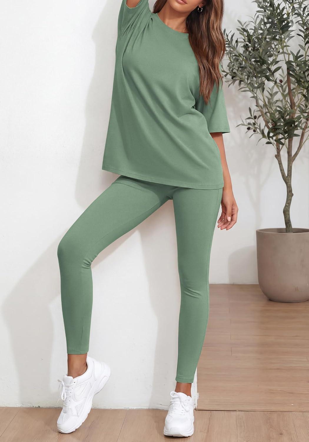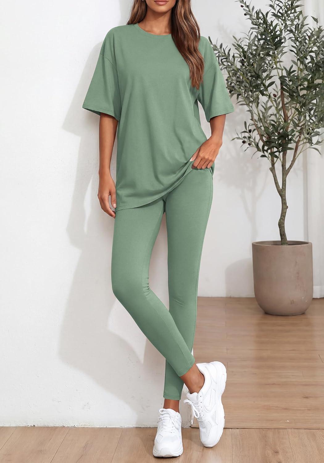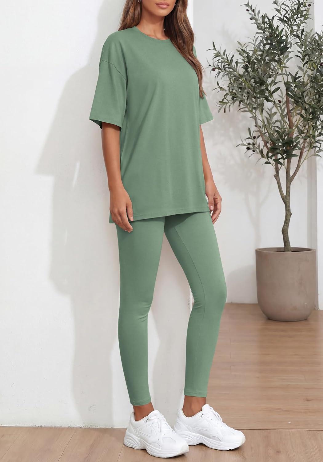 BTFBM Two Piece Lounge Set Women 2026 Spring Casual Oversized Shirts Leggings Matching Workout Airport Travel Outfits(Sage Green)