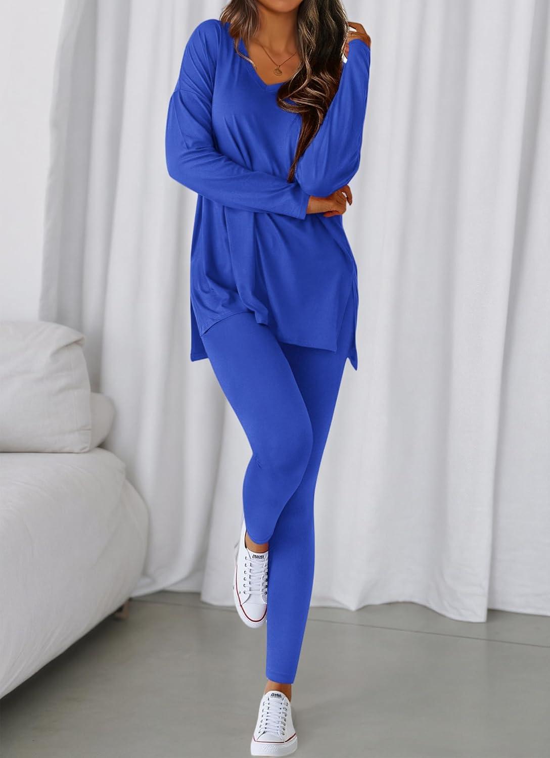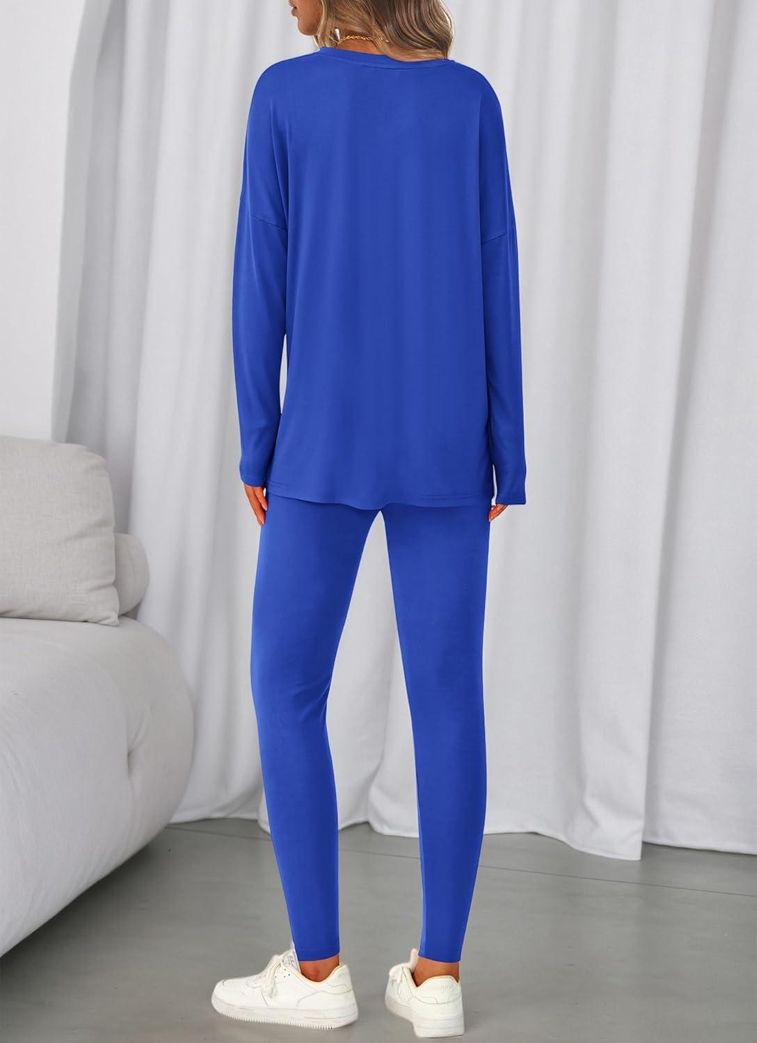 BTFBM Two Piece Sets for Women 2026 Casual Lounge Set Matching Oversized Shirts Leggings Workout Airport Travel Outfits(Blue)