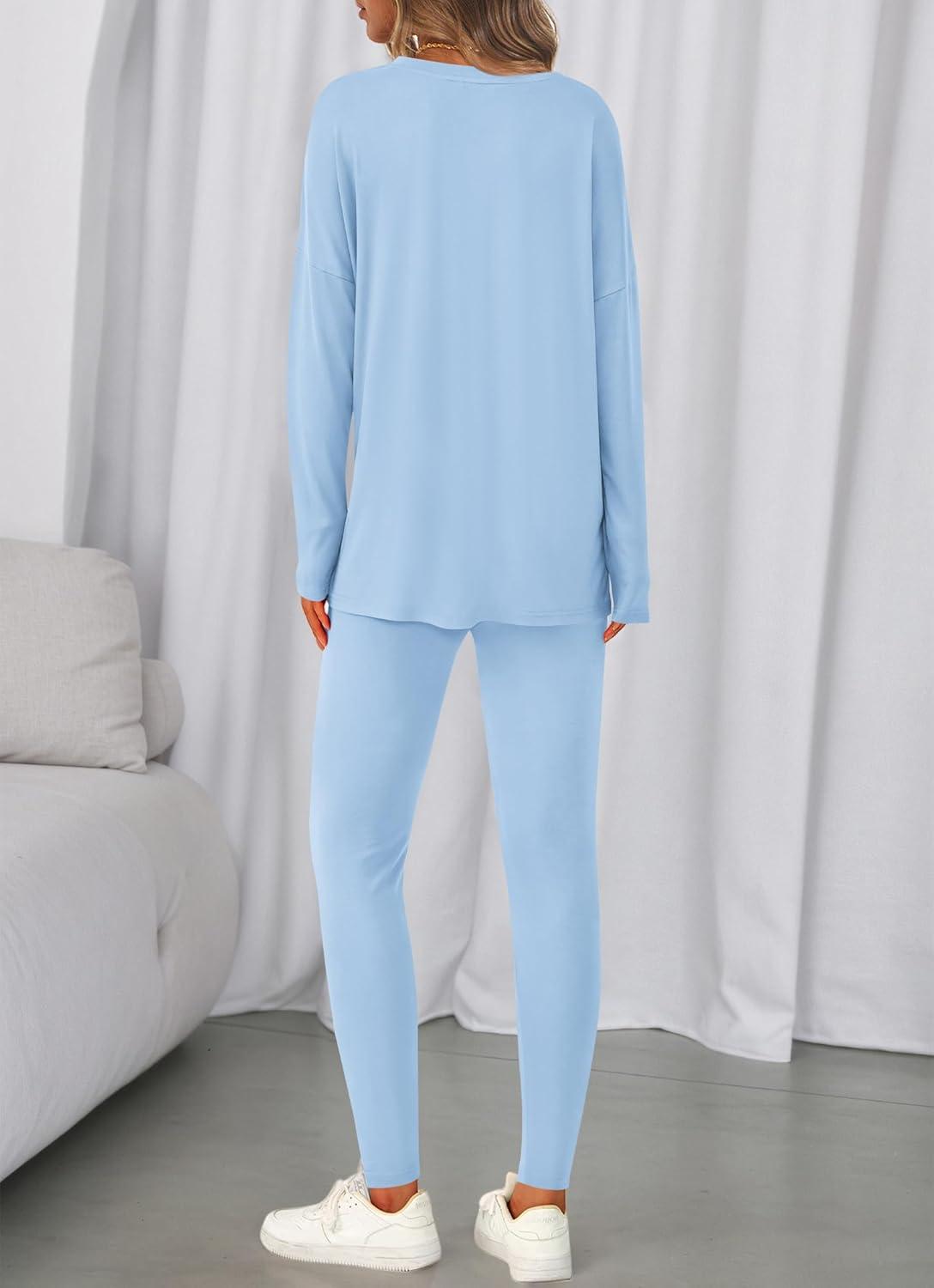 BTFBM Two Piece Sets for Women 2026 Casual Lounge Set Matching Oversized Shirts Leggings Workout Airport Travel Outfits(Light Blue)