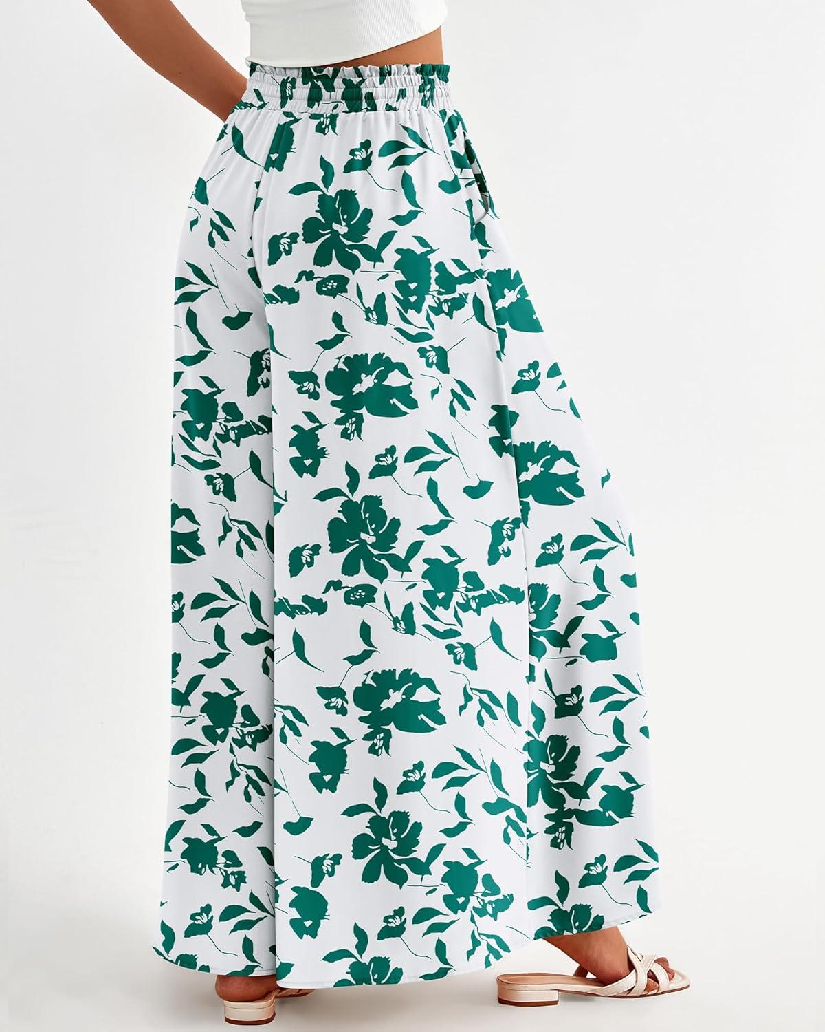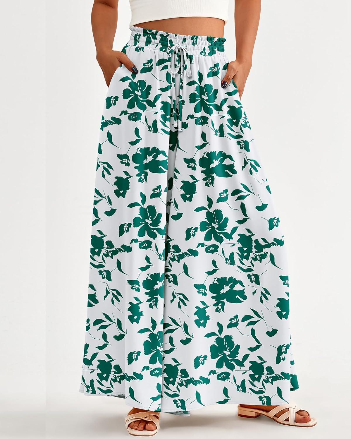 BTFBM Women Casual High Waist Wide Leg Pants 2026 Spring Summer Long Palazzo Pants Pocket Lounge Beach Vacation Clothes(Print Green)
