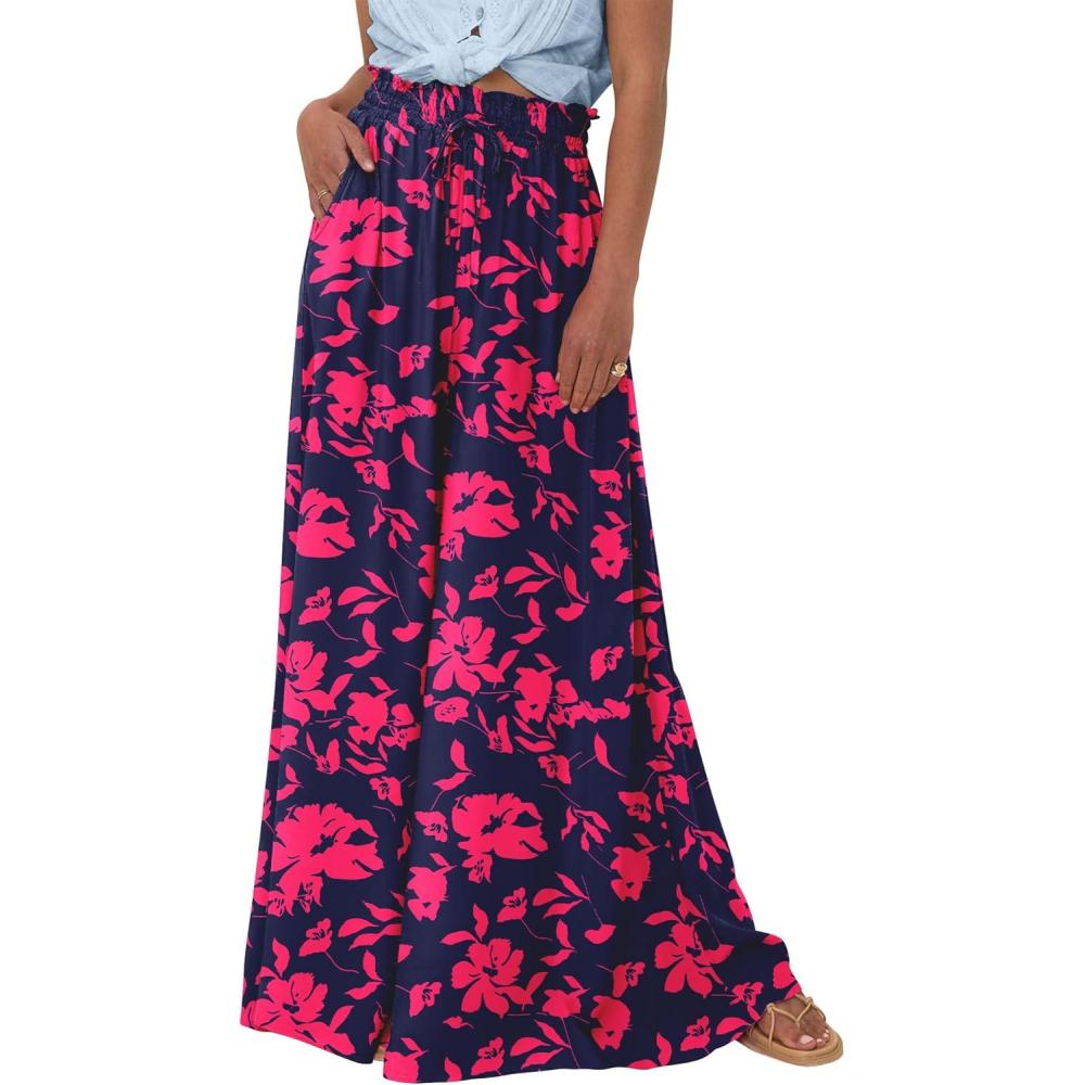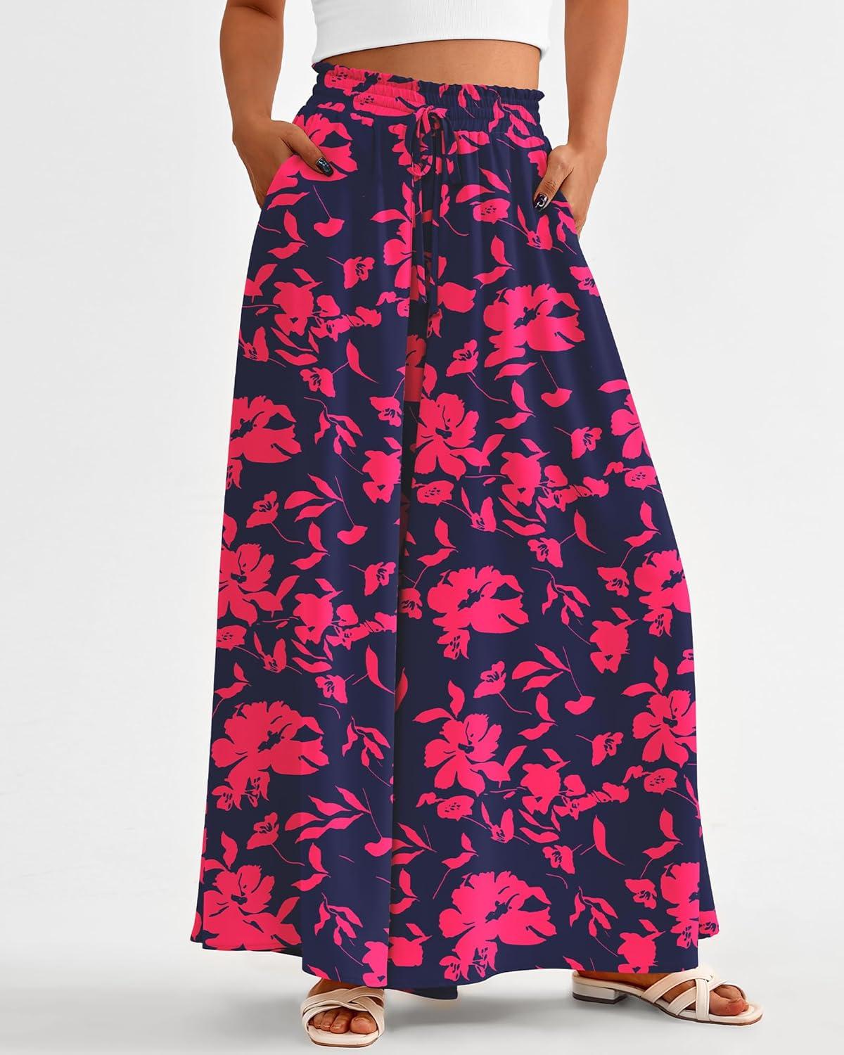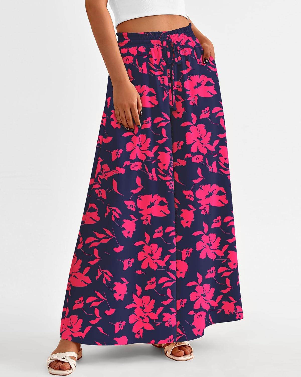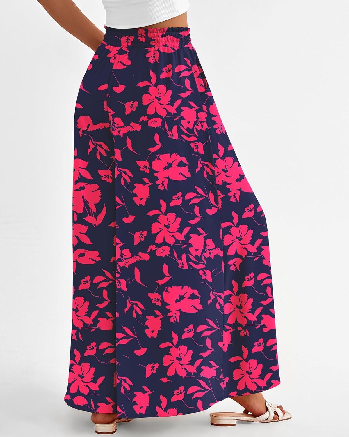 BTFBM Women Casual High Waist Wide Leg Pants 2026 Spring Summer Long Palazzo Pants Pocket Lounge Beach Vacation Clothes(Print Navy Rose Red)