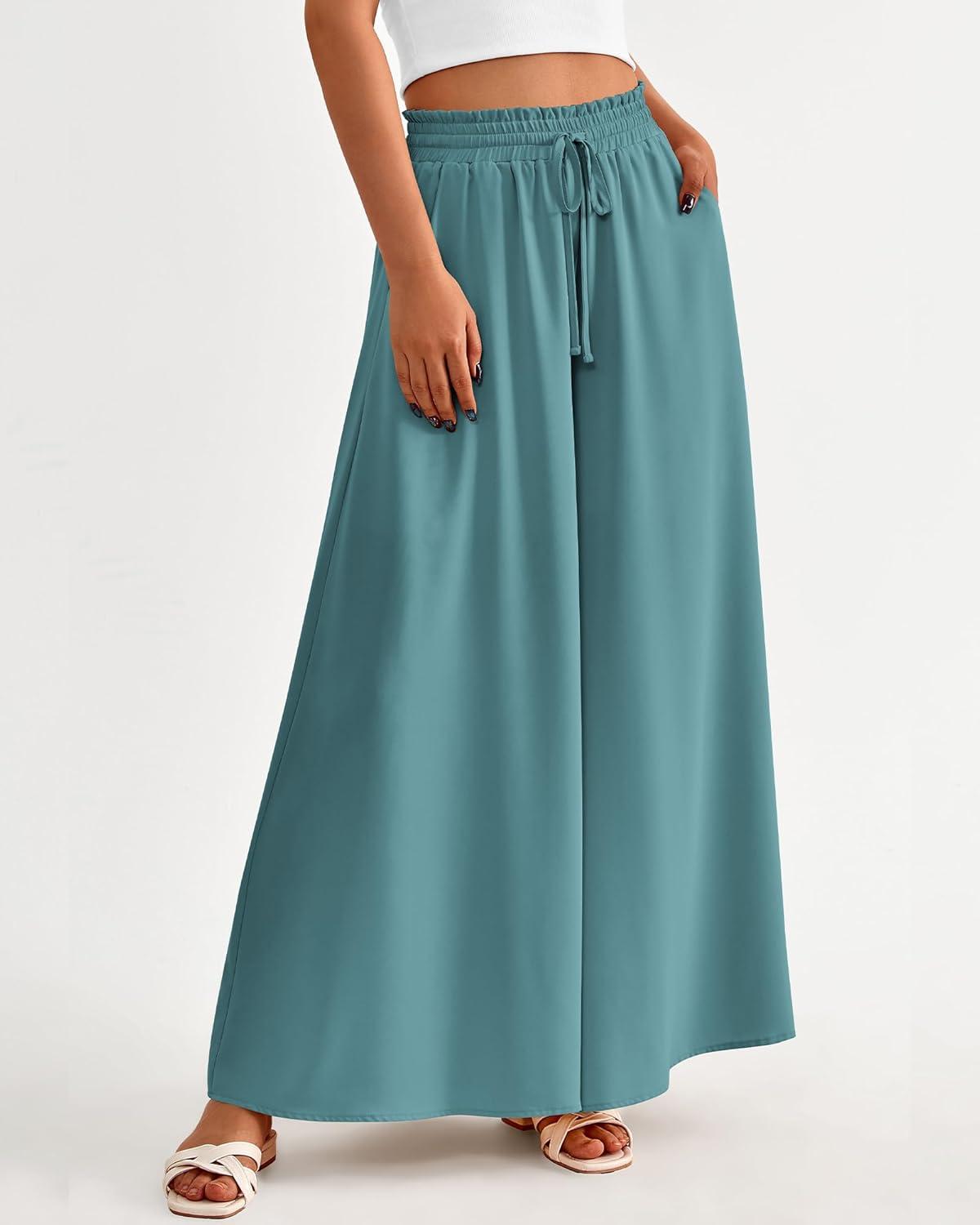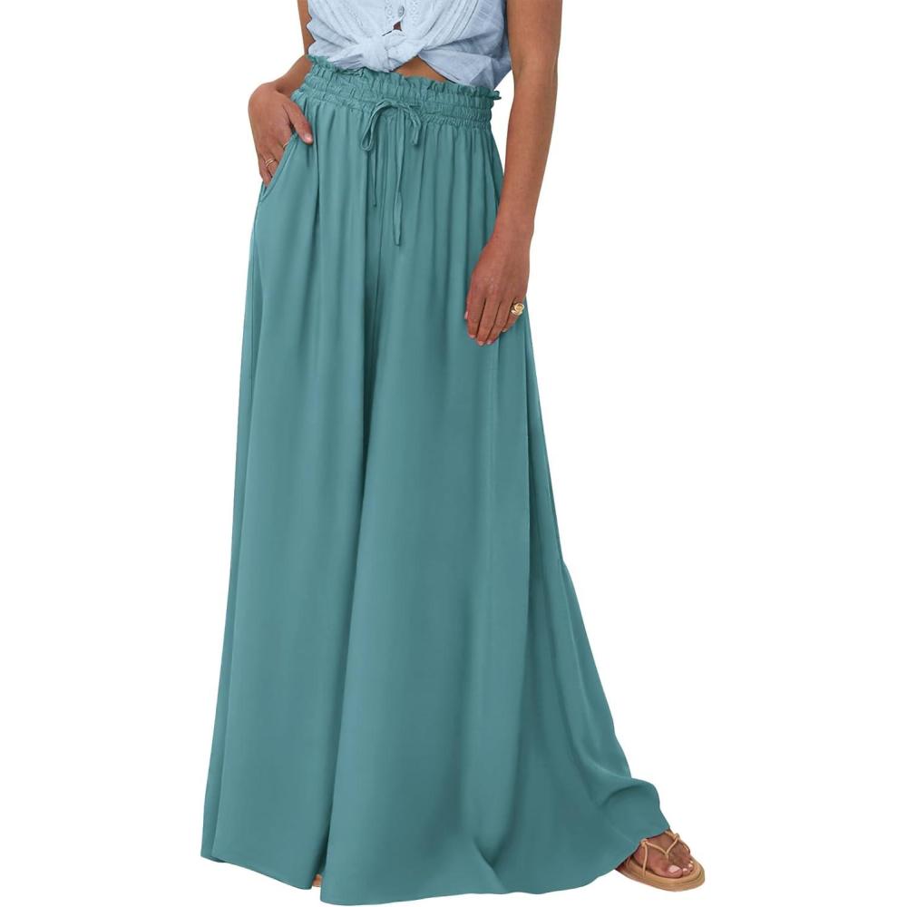 BTFBM Women Casual High Waist Wide Leg Pants 2026 Spring Summer Long Palazzo Pants Pocket Lounge Beach Vacation Clothes(Solid Blue Green)