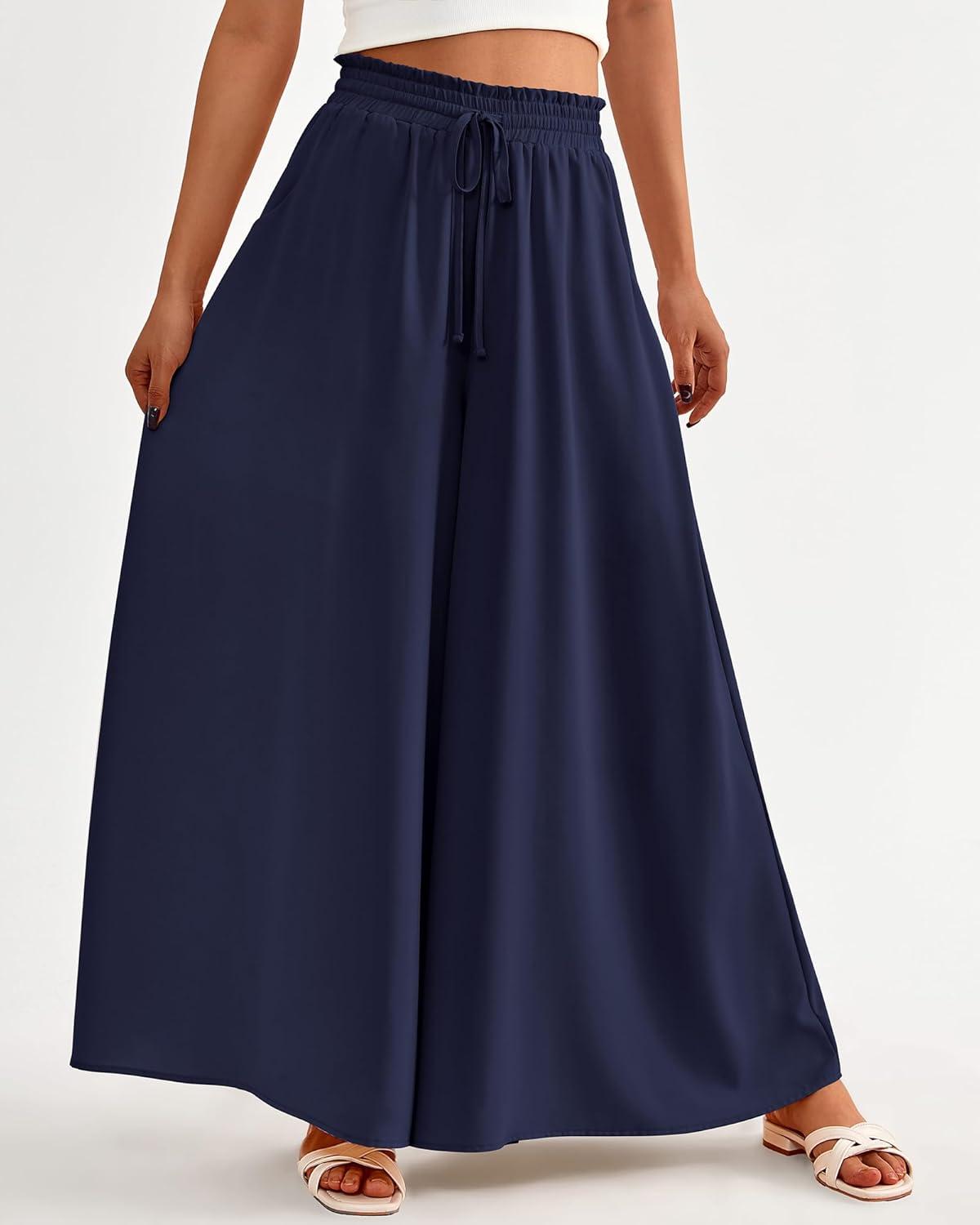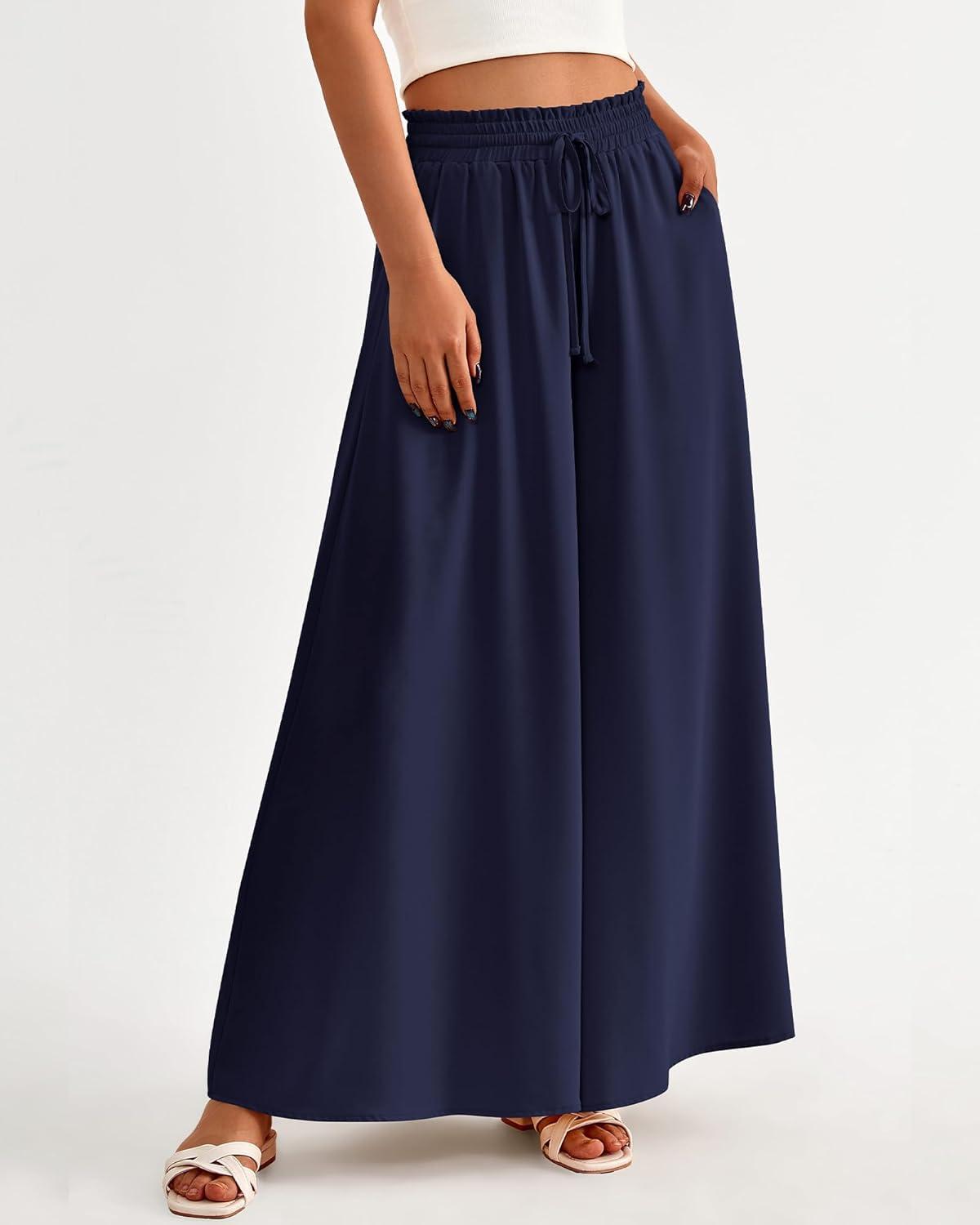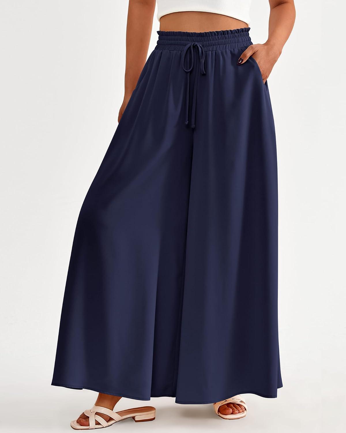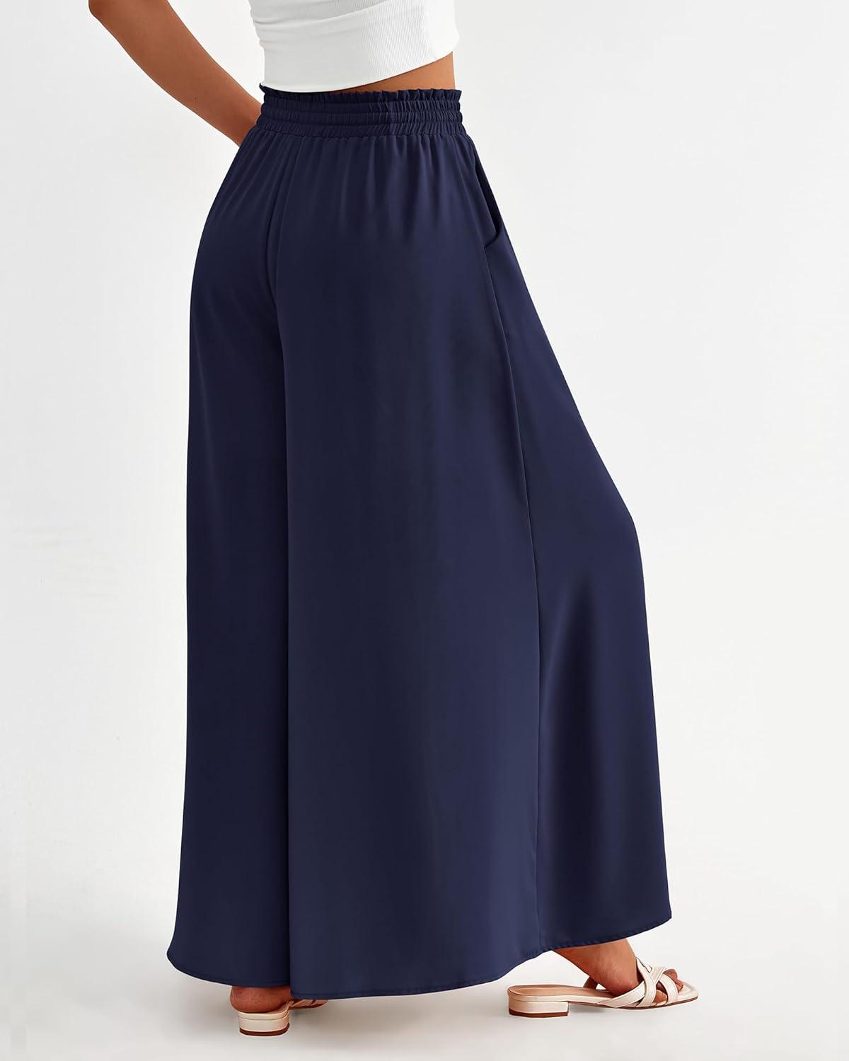 BTFBM Women Casual High Waist Wide Leg Pants 2026 Spring Summer Long Palazzo Pants Pocket Lounge Beach Vacation Clothes(Solid Navy)