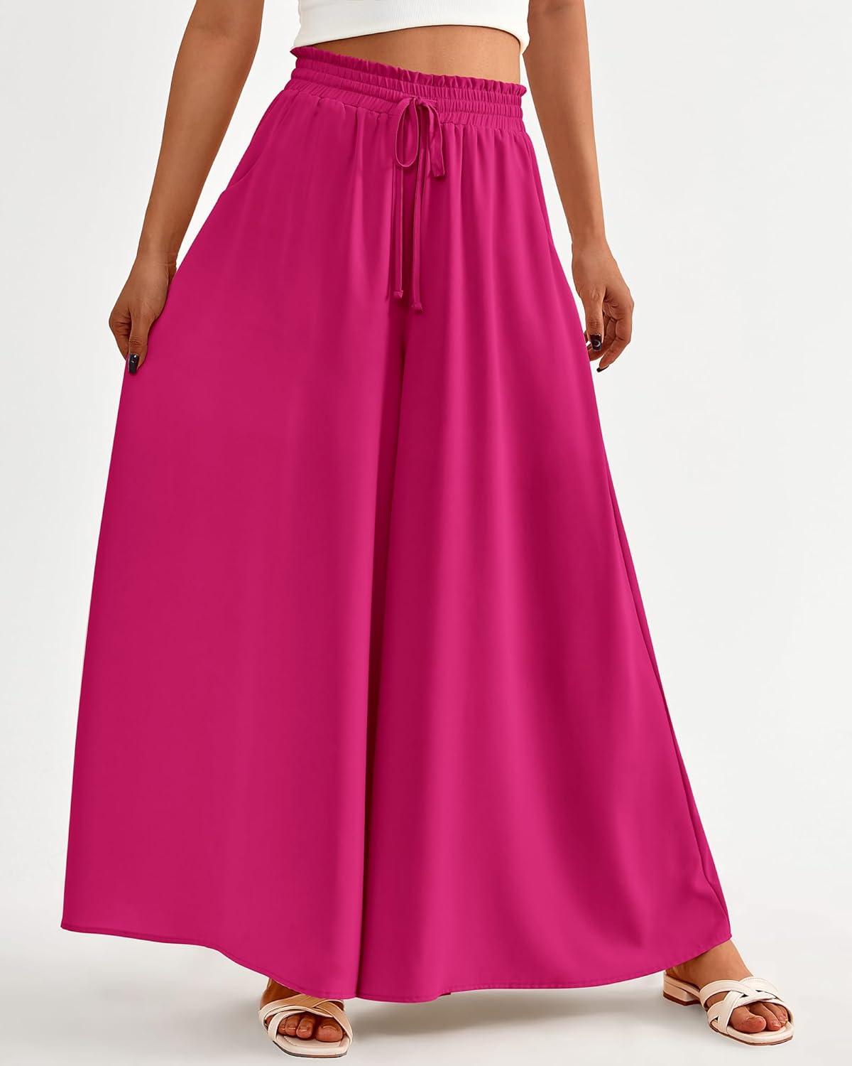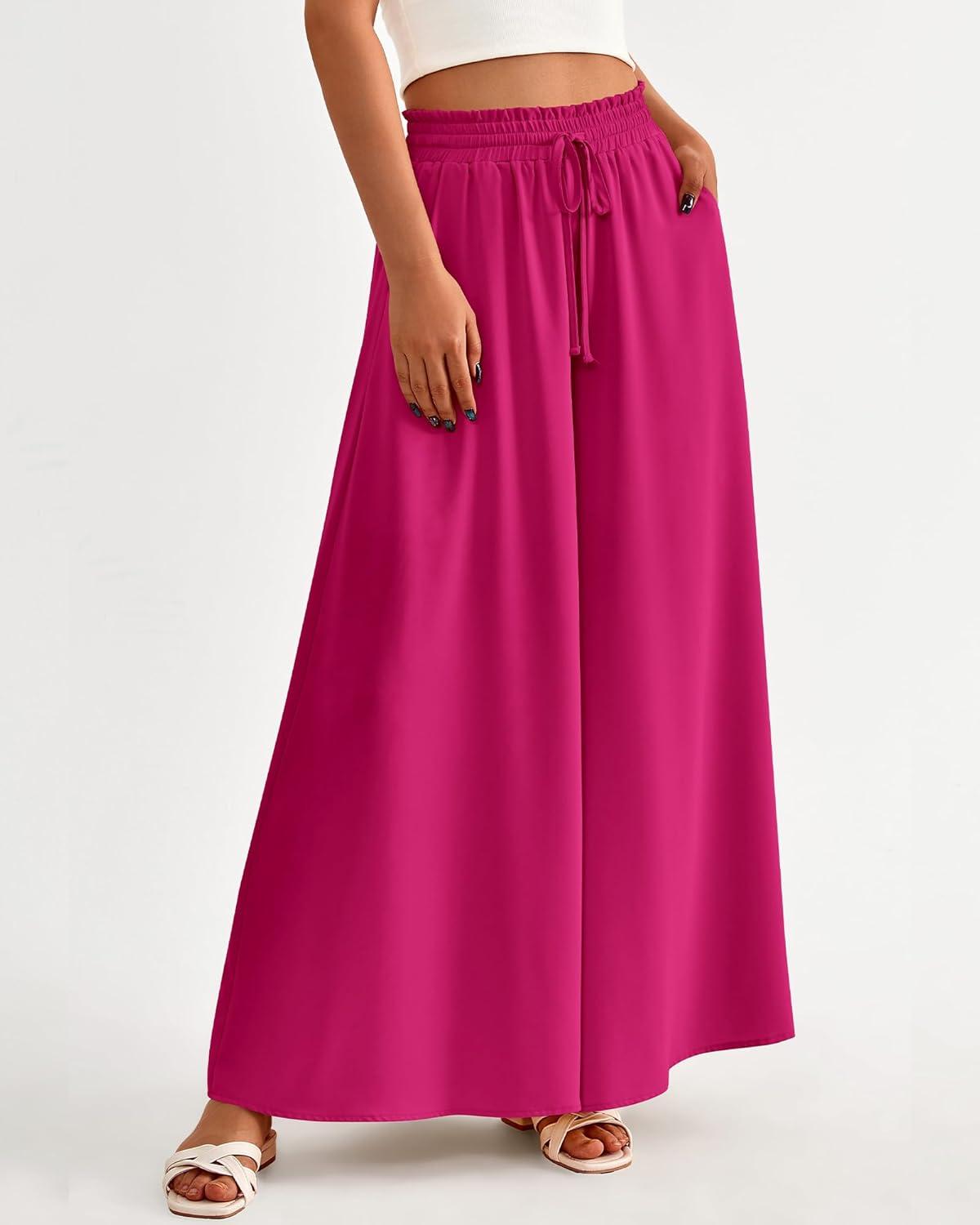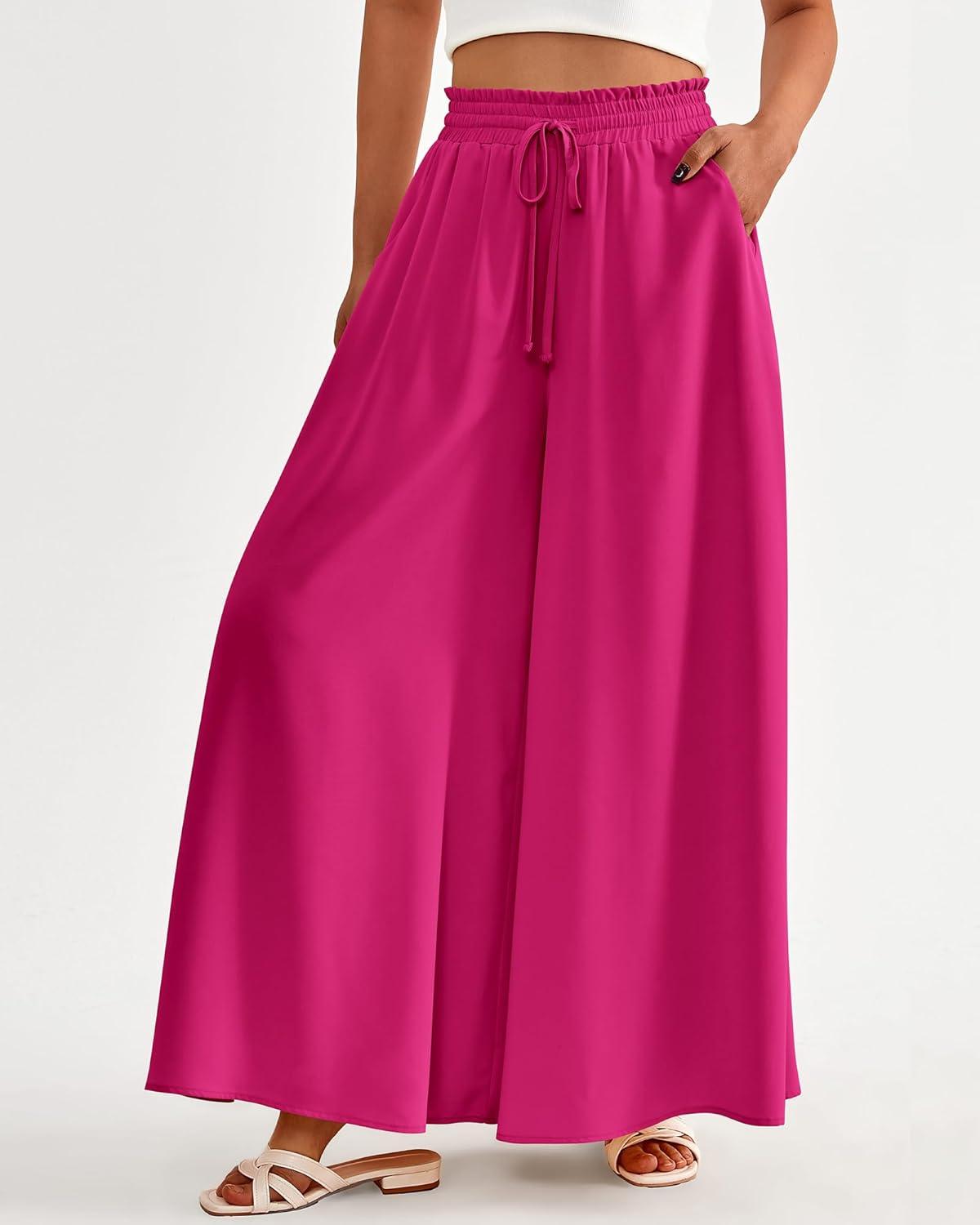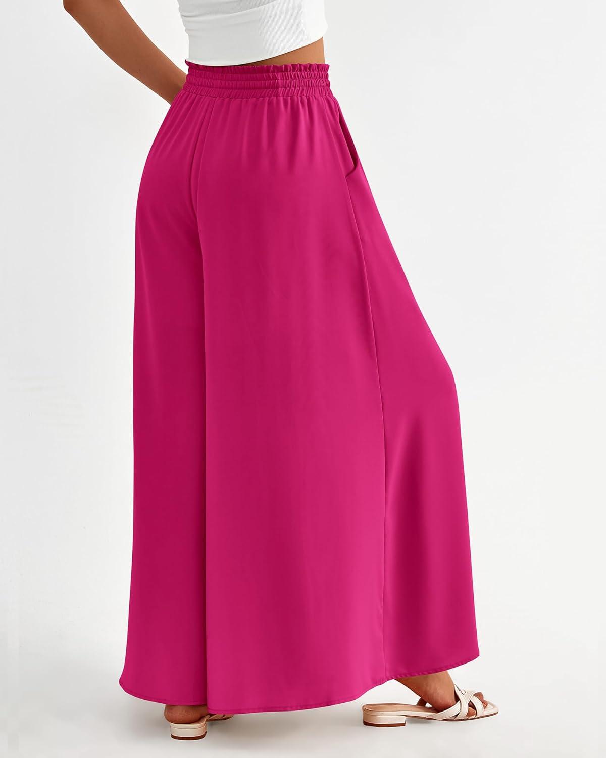 BTFBM Women Casual High Waist Wide Leg Pants 2026 Spring Summer Long Palazzo Pants Pocket Lounge Beach Vacation Clothes(Solid Rose Red)