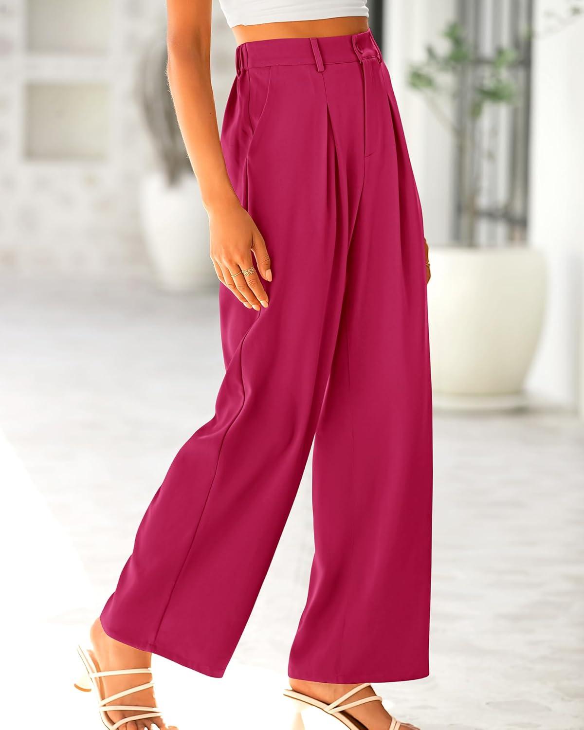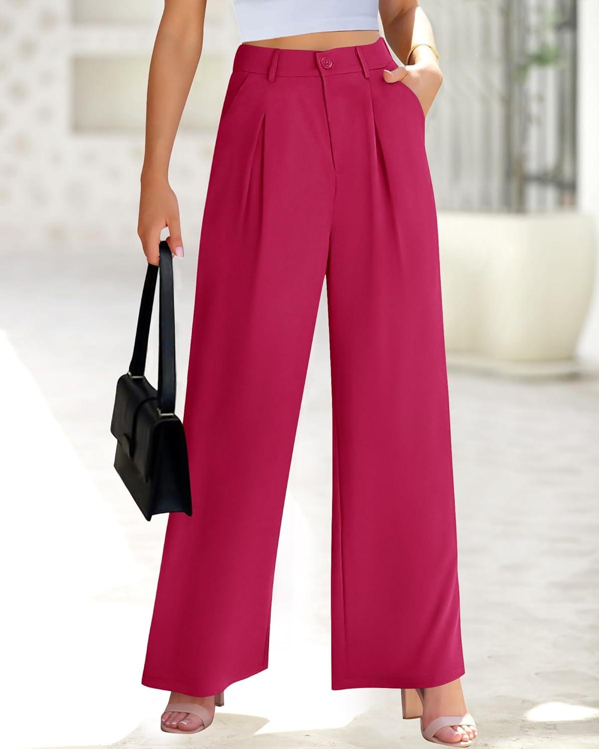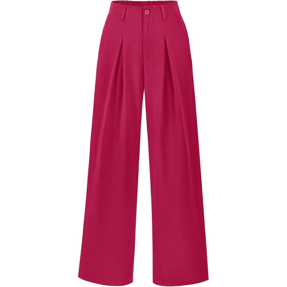 BTFBM Women High Waist Palazzo Pants Spring 2026 Casual Wide Leg Trousers Loose Work Office Business Suit Pant Pockets(Rose Red)
