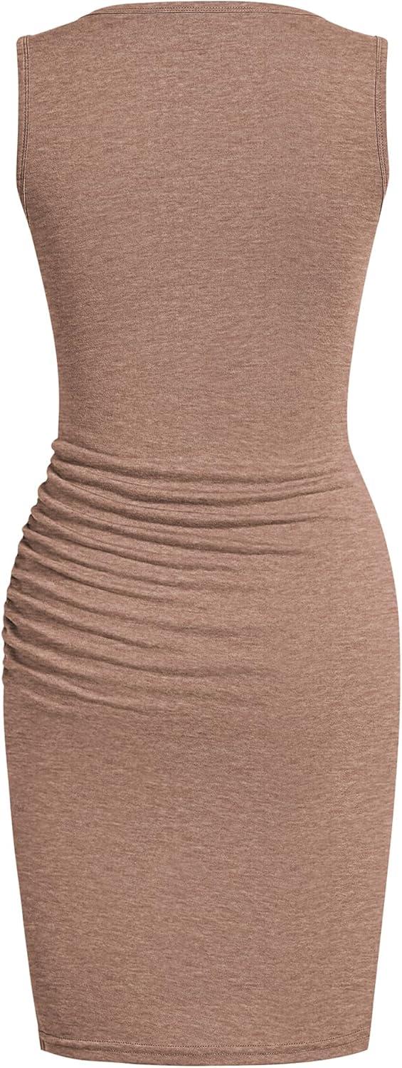 BTFBM Women Summer Dresses 2026 Sleeveless Tank Ruched Bodycon Sundresses for Women Party Beach Mini Casual Spring Dress(Light Brown)
