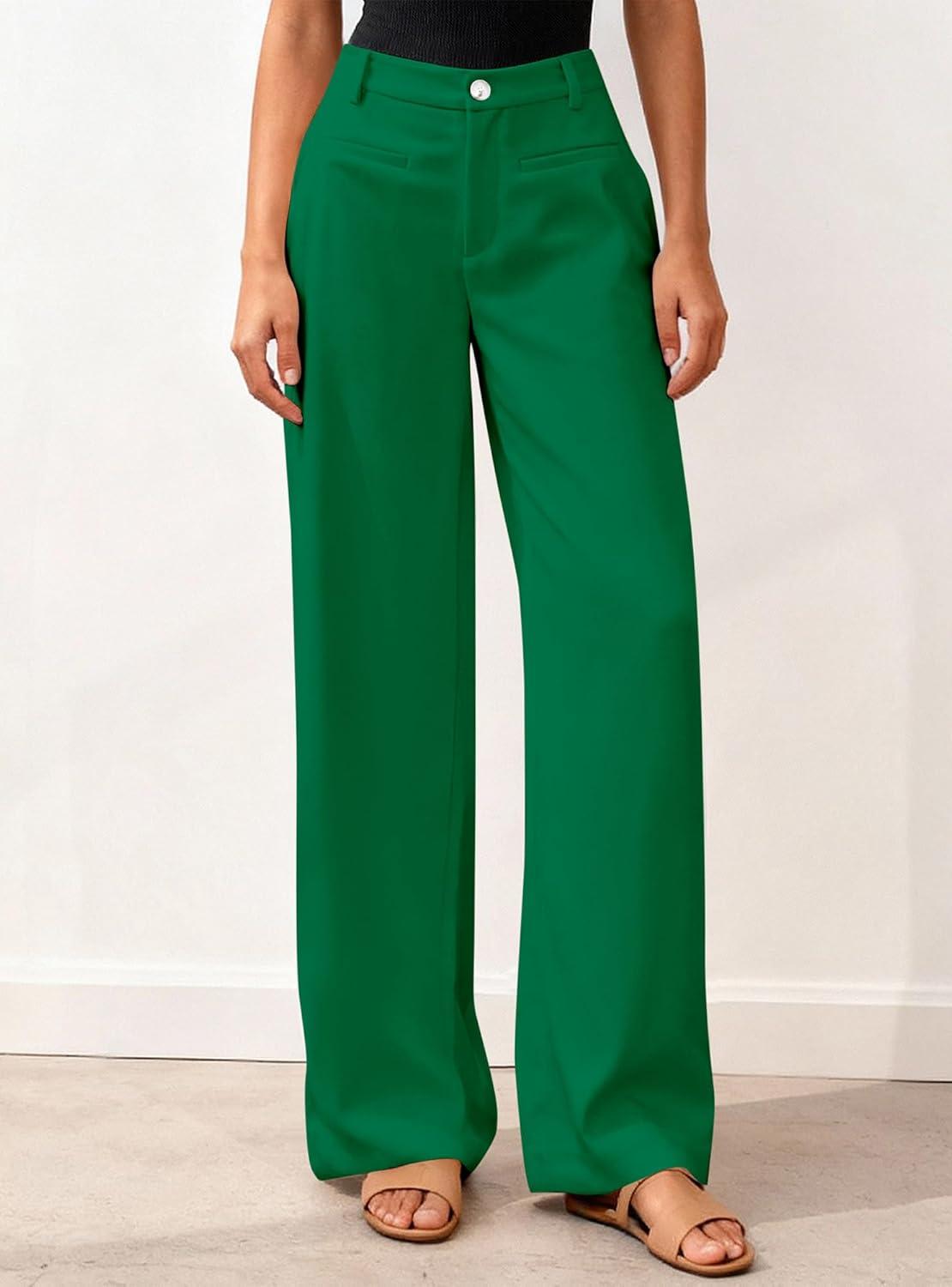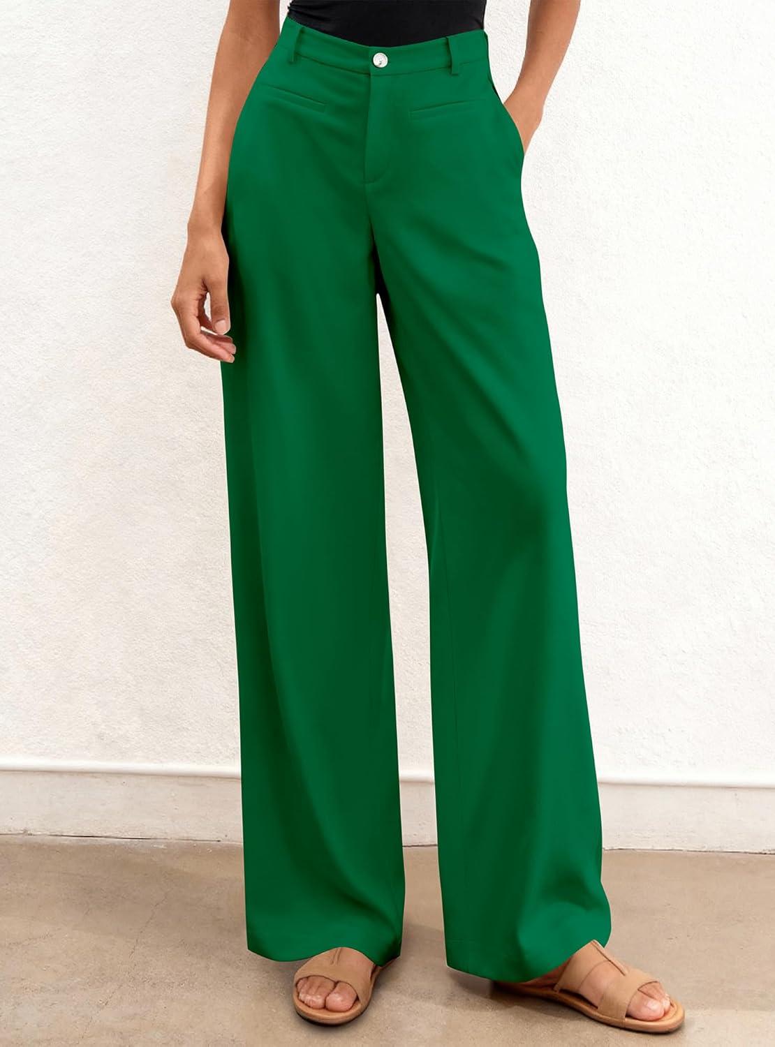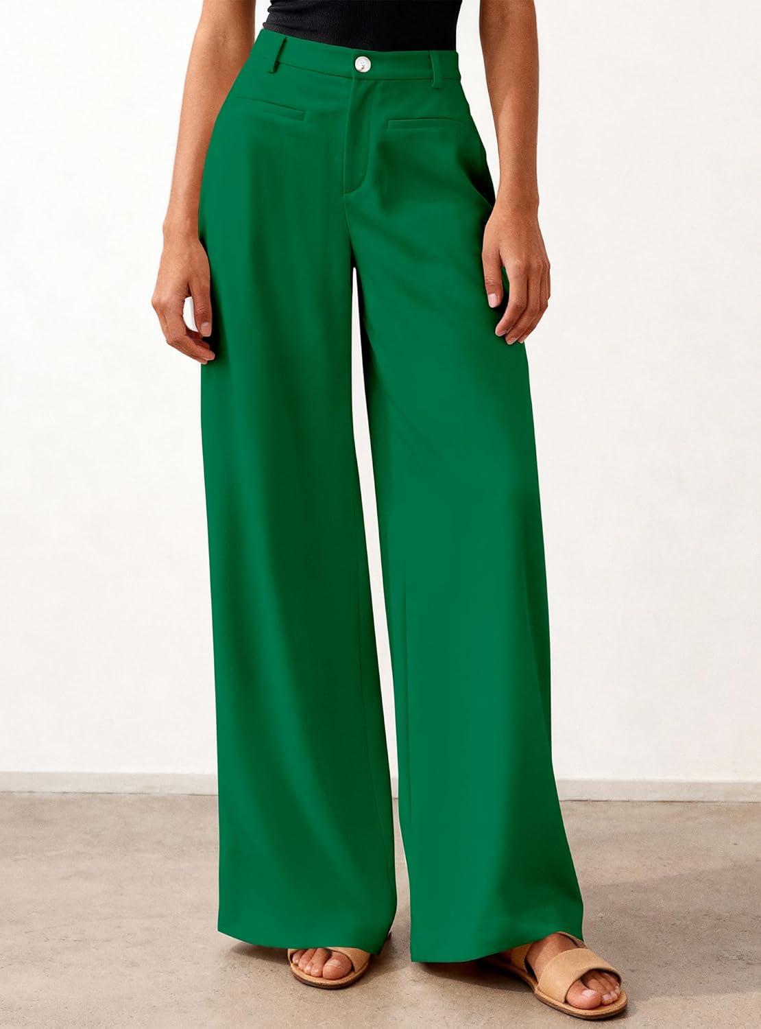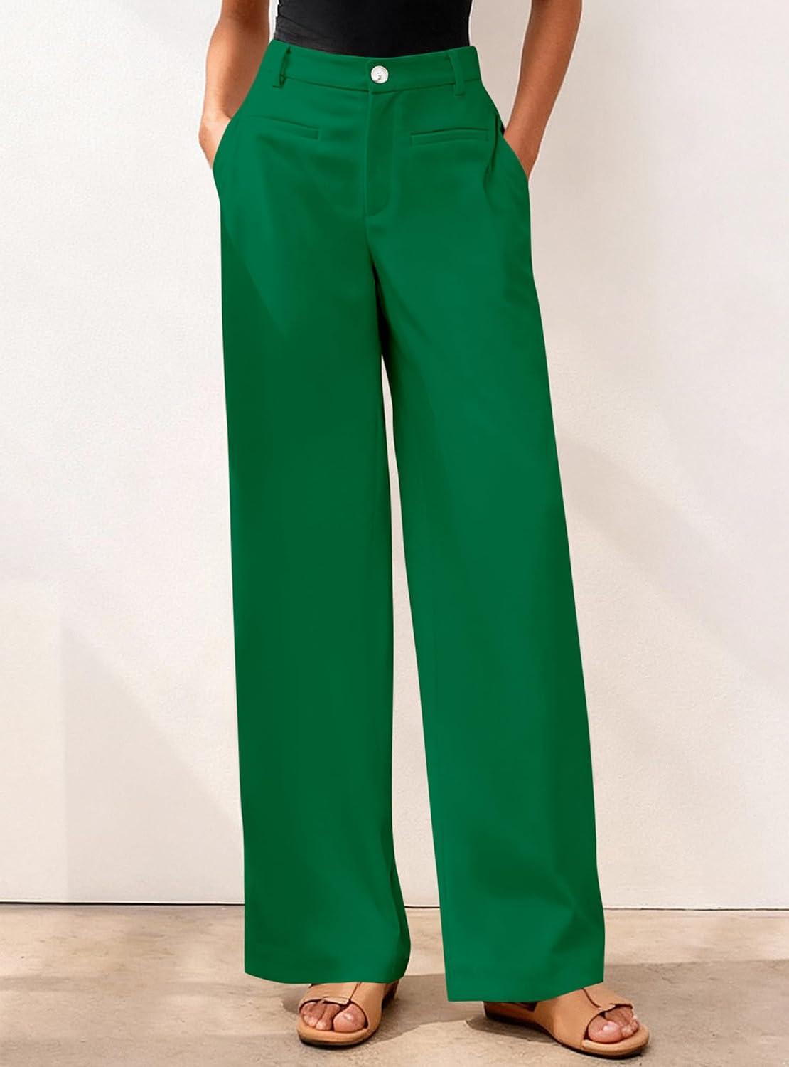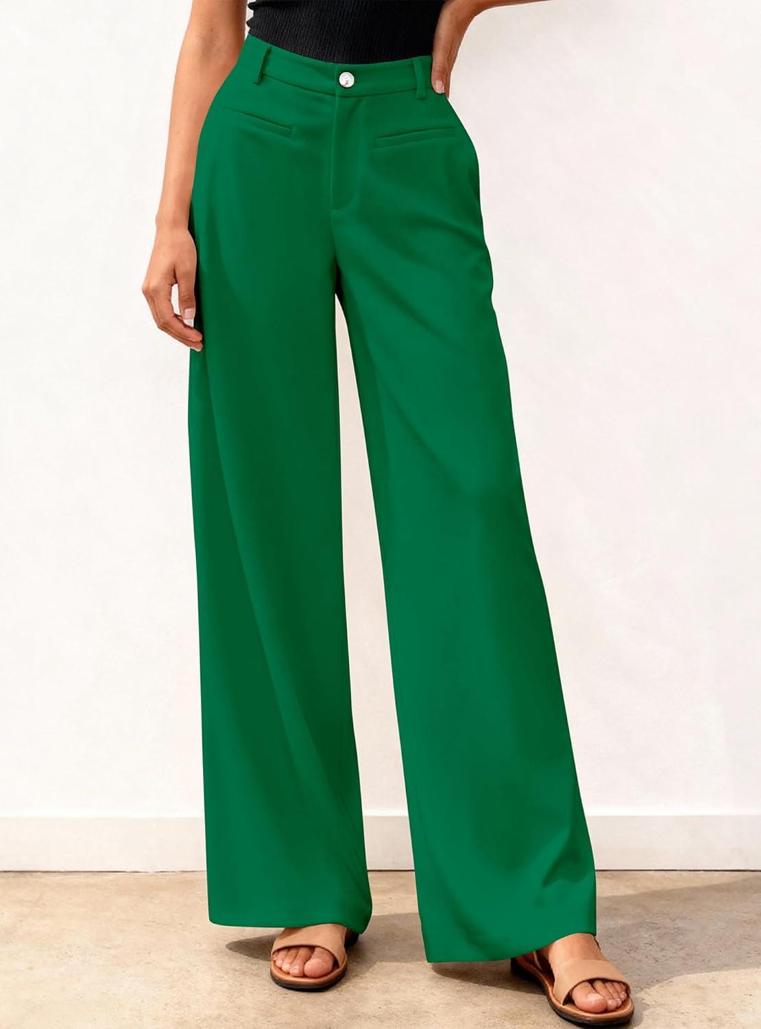 BTFBM Women Wide Leg Pants High Waisted Spring 2026 Business Casual Outfits Slacks Trousers Dressy Palazzo Pants Pockets(Green)