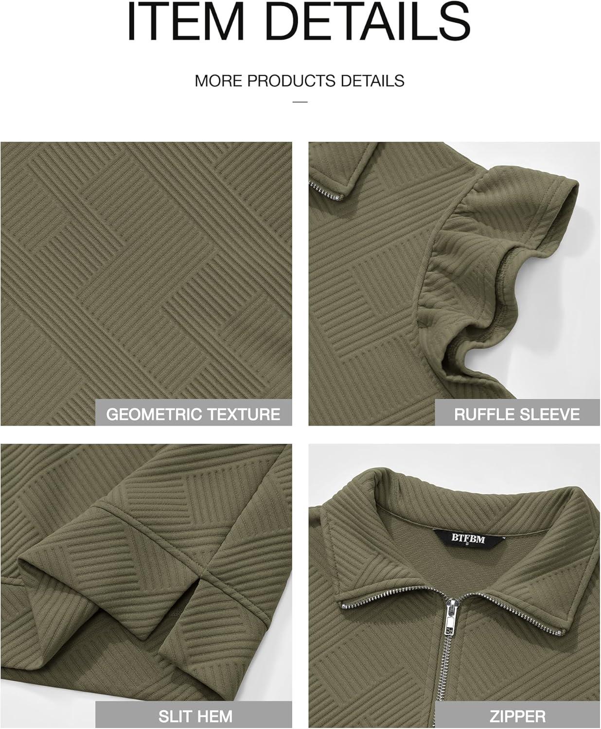 imageBTFBM Womens 2 Piece Outfits Spring Sweatsuit Zipper V Neck Casual Ruffle Cap Sleeve Tops Drawstring Shorts Lounge SetsArmy Green
