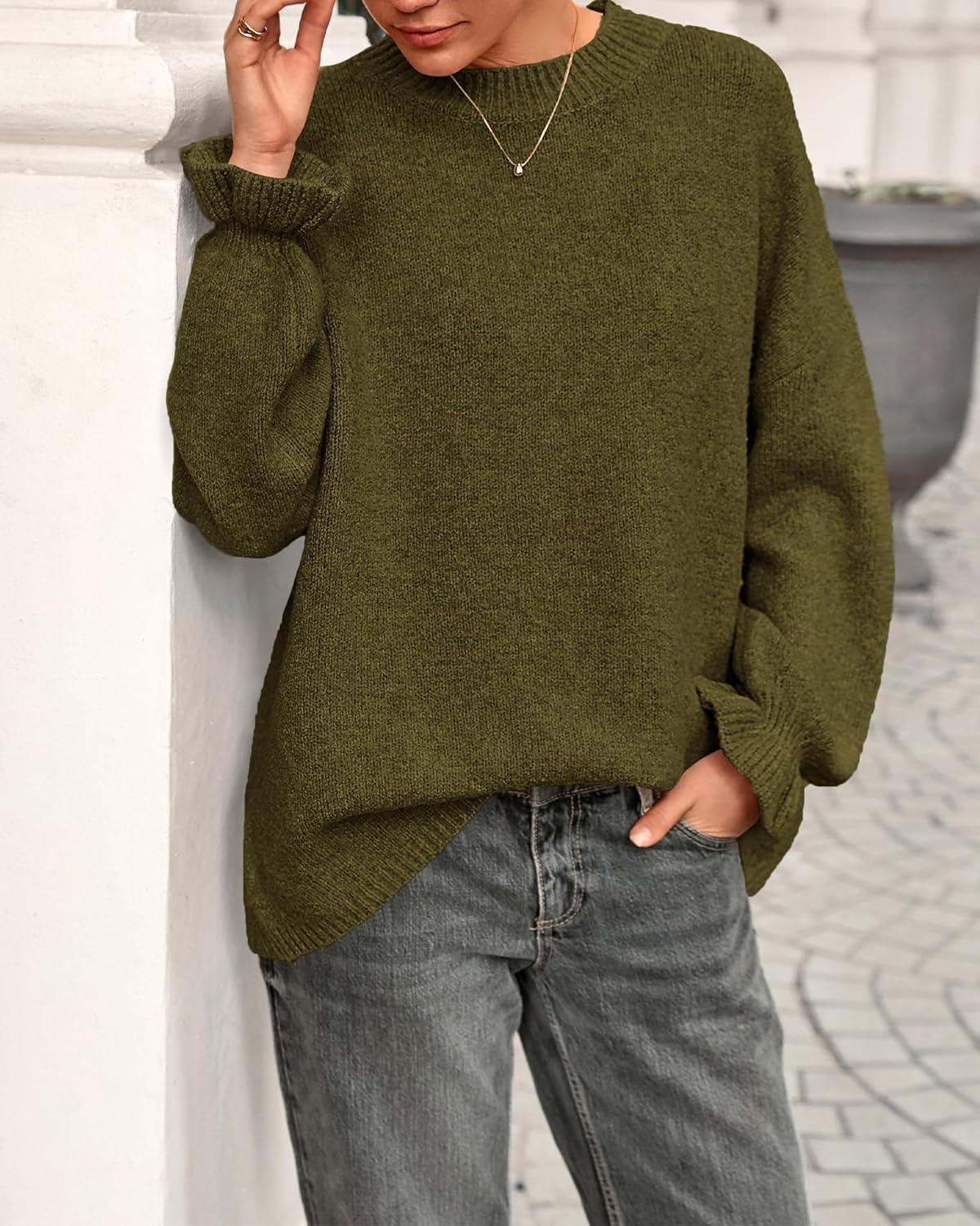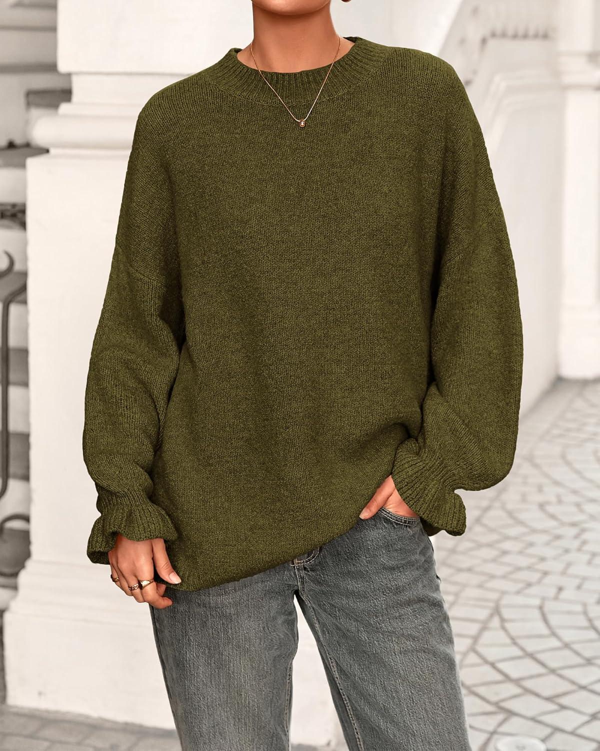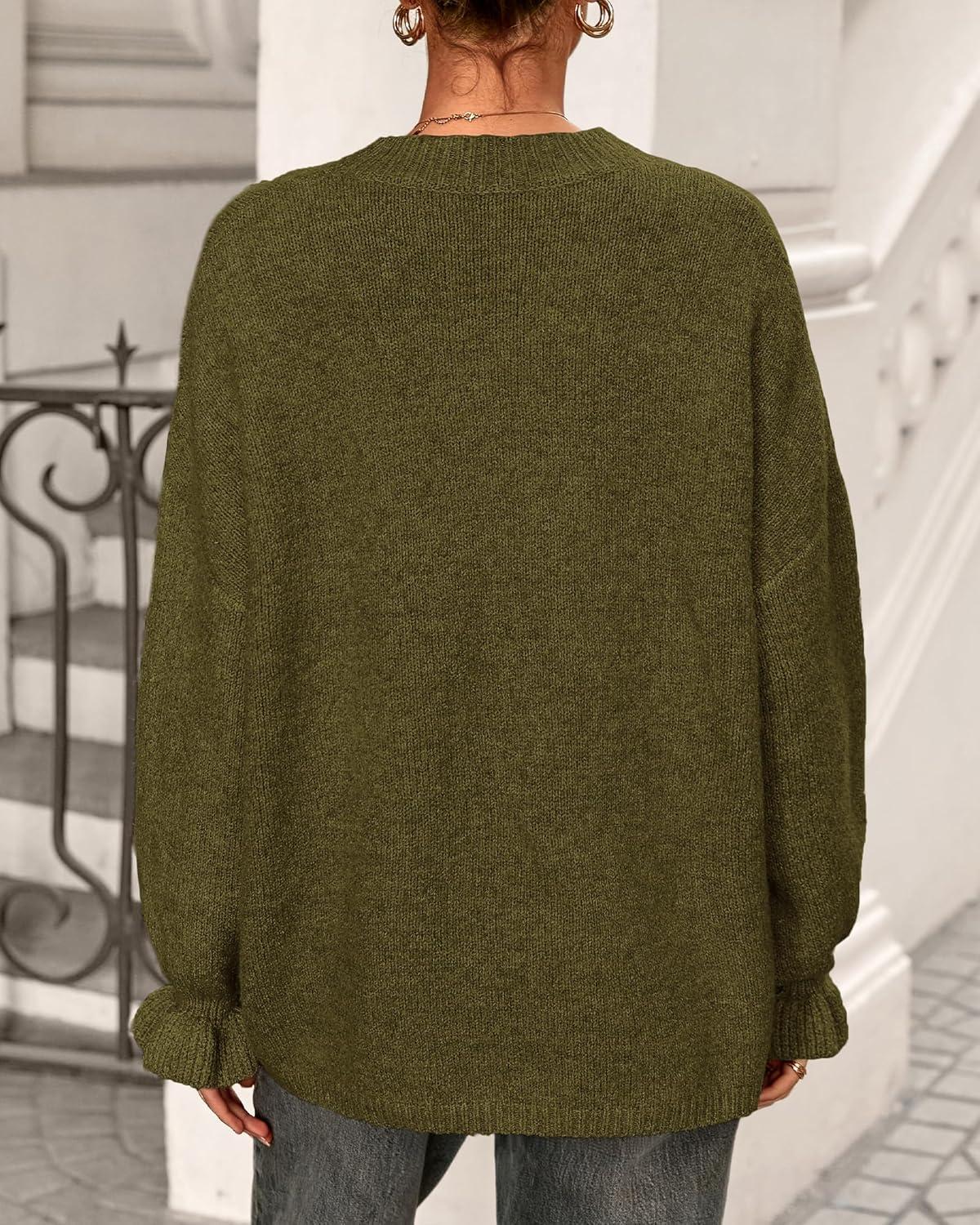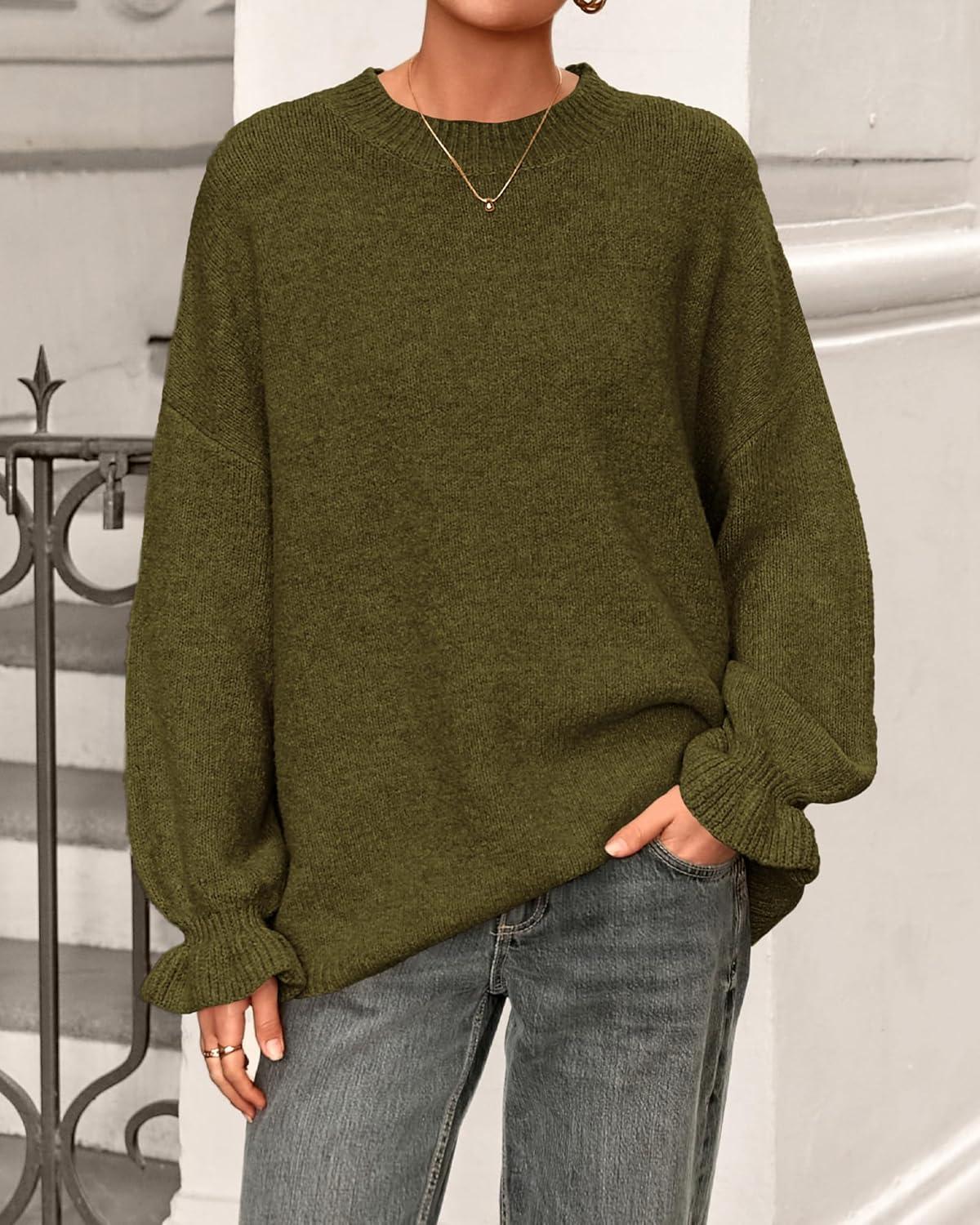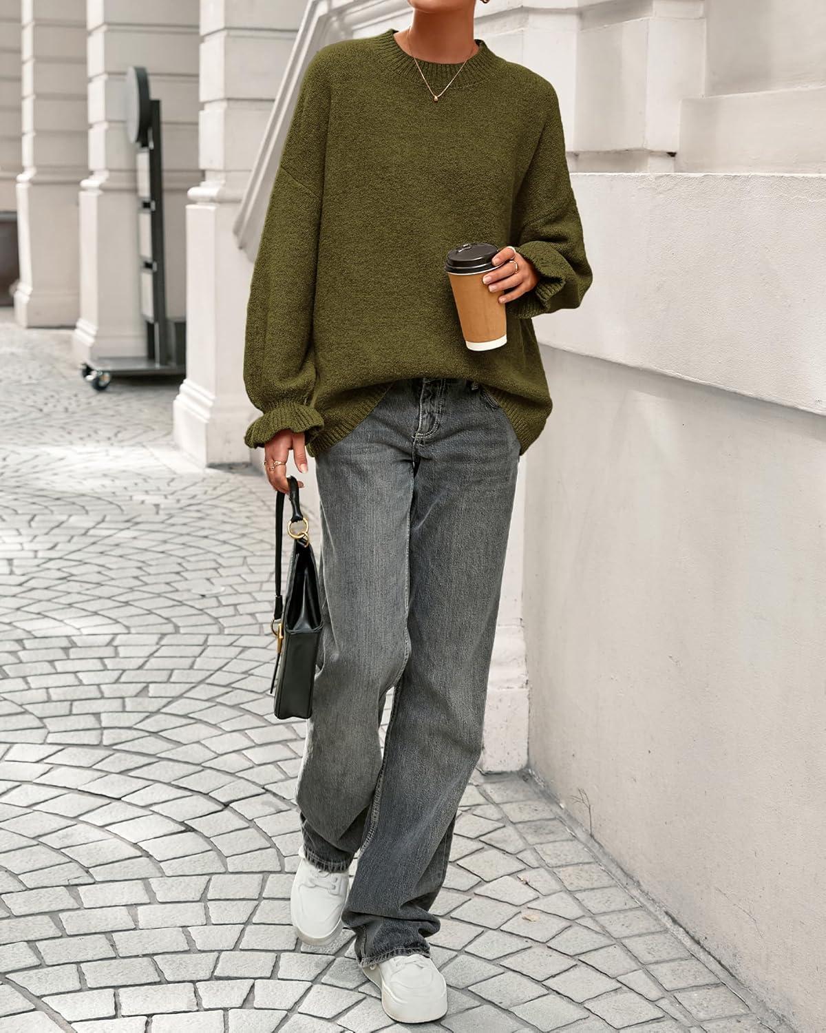 BTFBM Women’s Oversized Sweater Crewneck 2025 Fall Winter Long Sleeve Fuzzy Warm Knit Pullover Sweaters Trendy Outfits(Army Green)