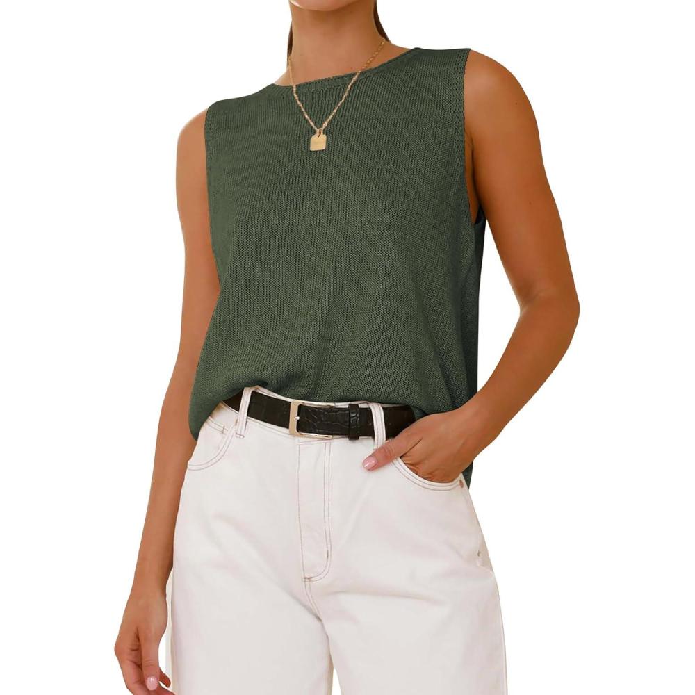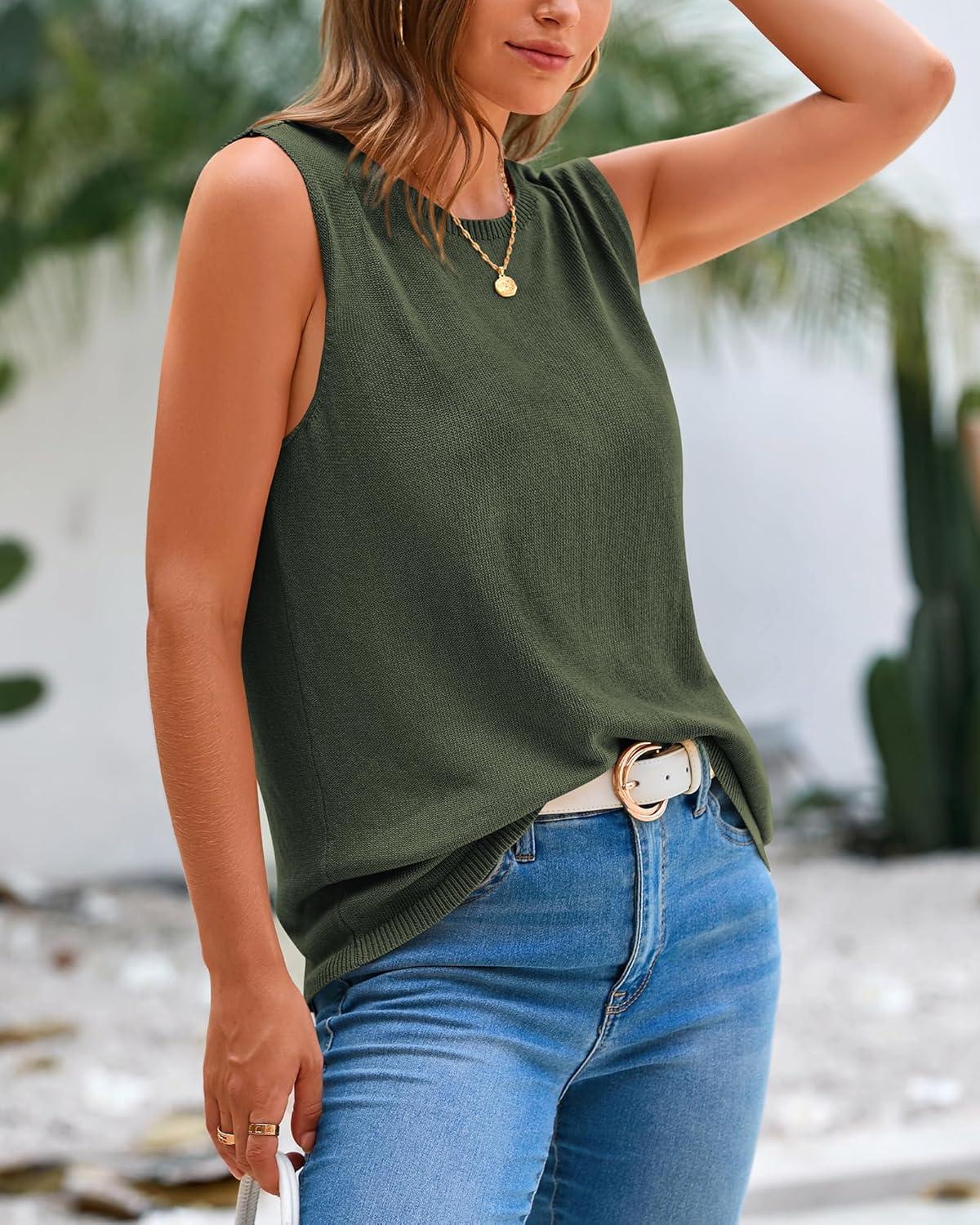 BTFBM Women’s Sleeveless Sweater Vest 2026 Summer Crew Neck Ribbed Knit Lightweight Pullover Casual Loose Fit Tank Tops(Army Green)