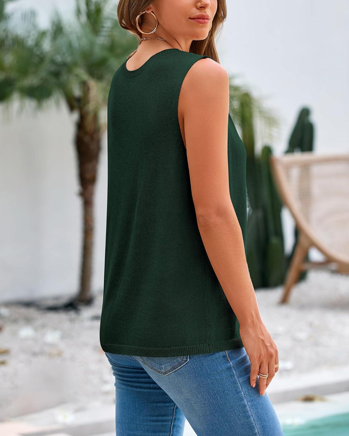 BTFBM Women's Sleeveless Sweater Vest 2026 Summer Crew Neck Ribbed Knit Lightweight Pullover Casual Loose Fit Tank Tops(Dark Green)