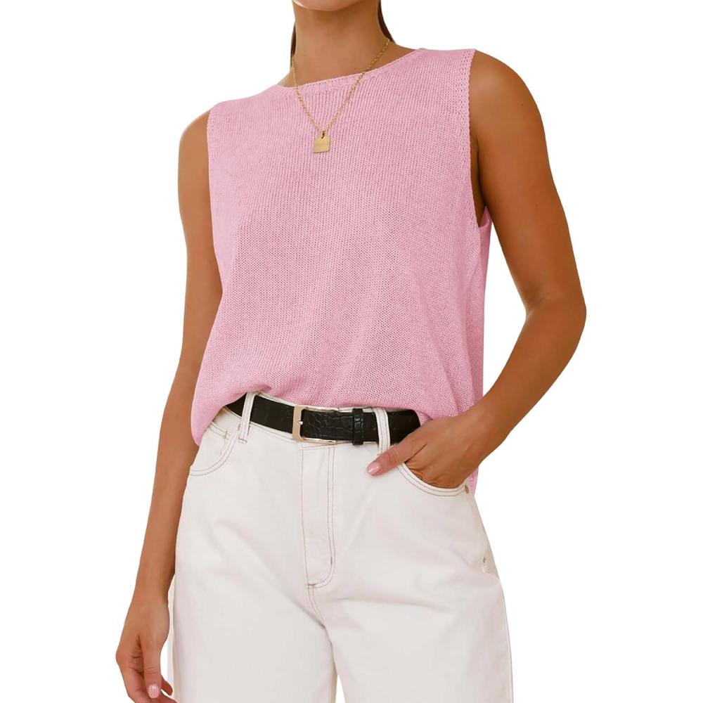 BTFBM Women's Sleeveless Sweater Vest 2026 Summer Crew Neck Ribbed Knit Lightweight Pullover Casual Loose Fit Tank Tops(Pink)